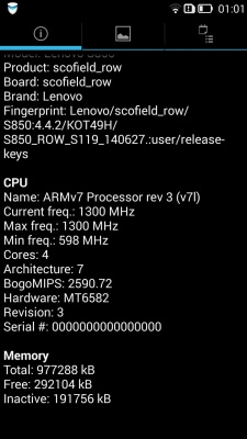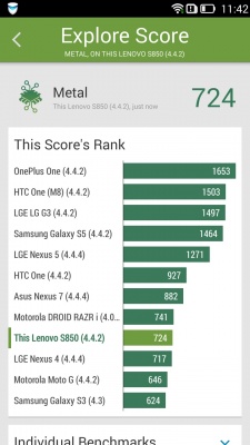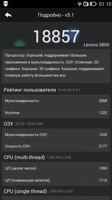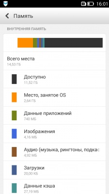 Lenovo S850 обладает 16 ГБ встроенной нерасширяемой памяти, из которых пользователю доступно немногим больше 14,5 ГБ.