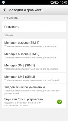 В настройках все довольно типично! Пользователь может выбрать тот или иной профиль, настроить громкость уведомлений, мультимедиа и прочее, а также присвоить отдельные мелодии входящего звонка каждой SIM-карте и многое другое.