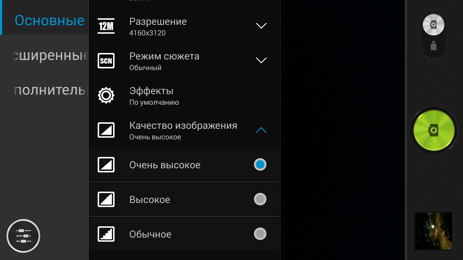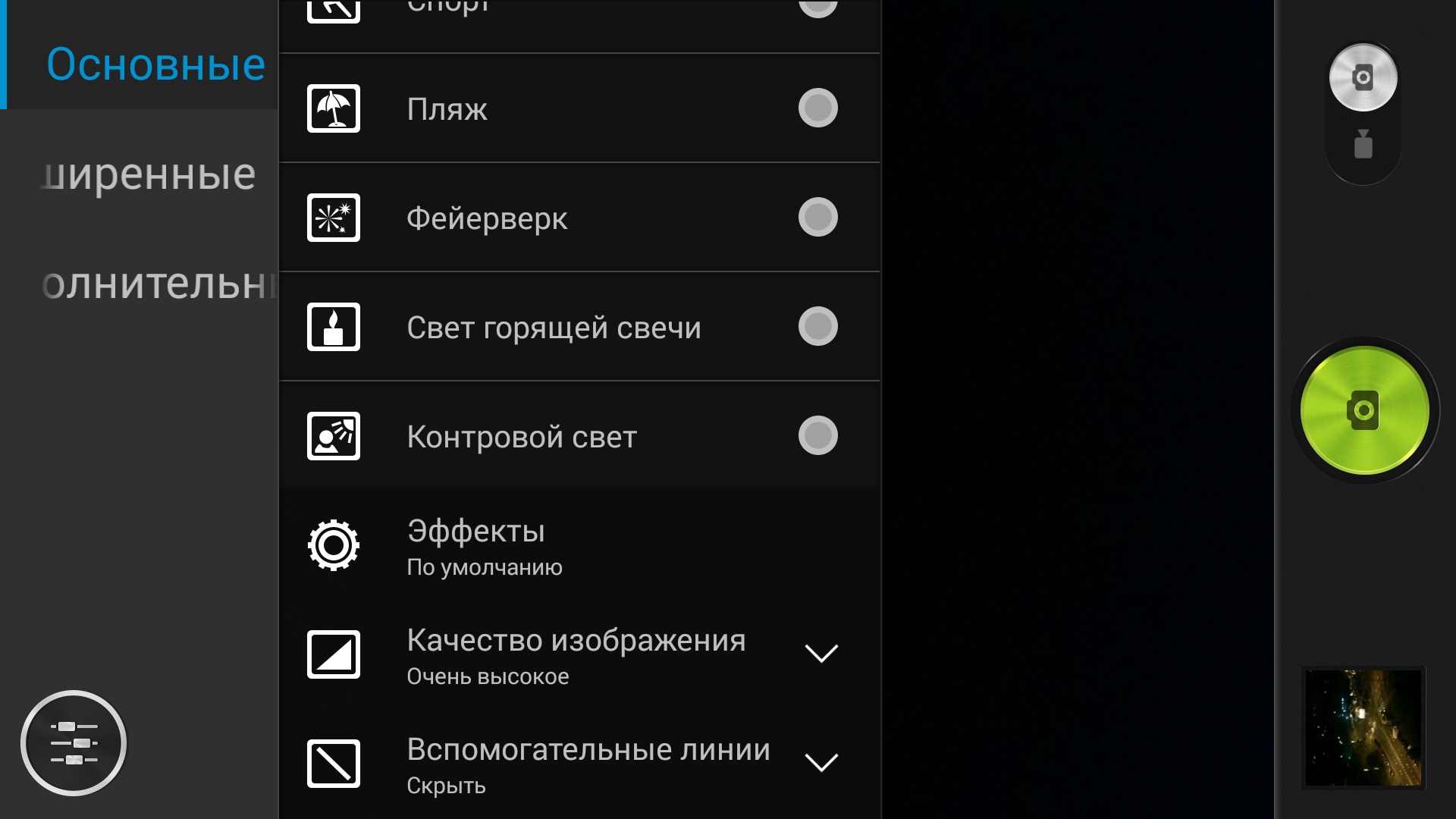 В меню настроек предусмотрен пункт «Экранные эффекты», в котором пользователь может регулировать насыщенность, оттенок и резкость по нескольким заданным режимам.
