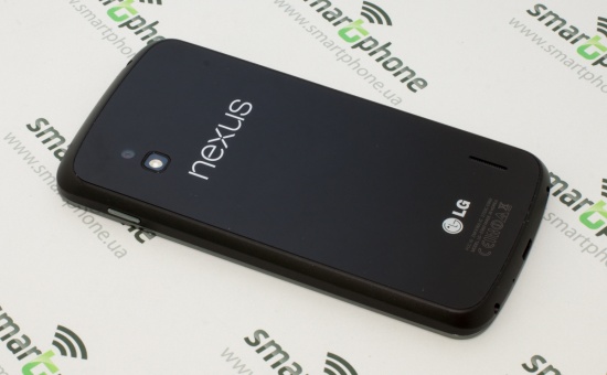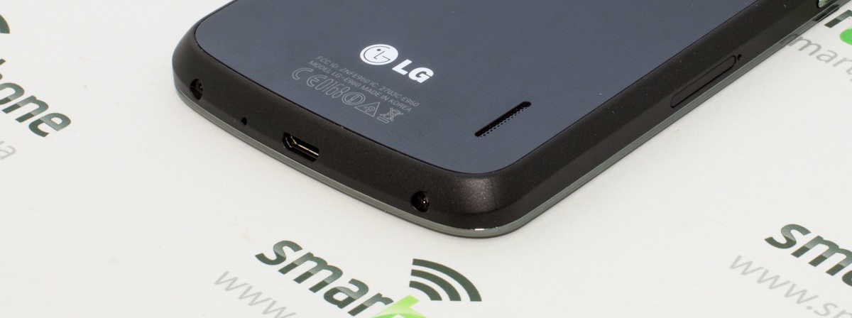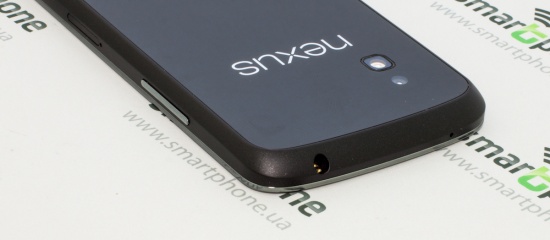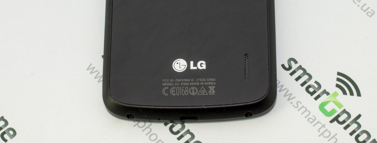 В теле тыльной панели виднеется глазок основной 8 Мп камеры, а также глазок вспышки, вывод динамика громкой связи, лого NEXUS и LG плюс несколько строк технической информации о новинке.