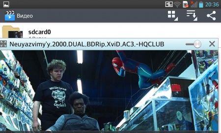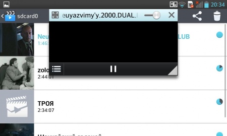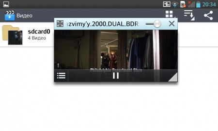Во время воспроизведения пользователь может масштабировать видео вручную, регулировать звук прямо в меню проигрывателя, а также задействовать функцию QSlide, при помощи которой можно вынести работу этого приложения поверх других функций. К слову, данная функция в Optimus G реализована для нескольких приложений, а точнее для пяти. Чуть детальнее о ней поговорим ниже.