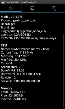 В основе LG Optimus G 4-ядерный процессор Qualcomm Snapdragon S4 Pro APQ8064 (Krait), а также графический чип Adreno 320 и 2 ГБ оперативной памяти.