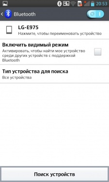 Bluetooth реализован в четвертой редакции. Пользователь имеет возможность выбрать тип устройства для поиска, просмотреть полученные файлы и многое другое.