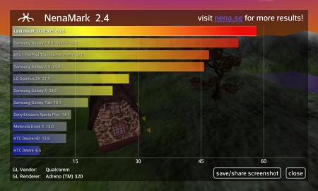 LG Optimus G показывает очень хорошую производительность системы, что и доказывают соответствующие иллюстрации ниже.
