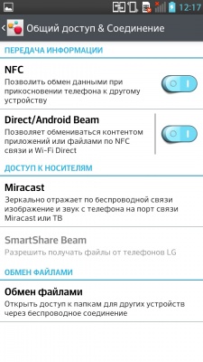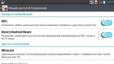 Miracast и SmartShare Beam используются для передачи данных на телевизор.