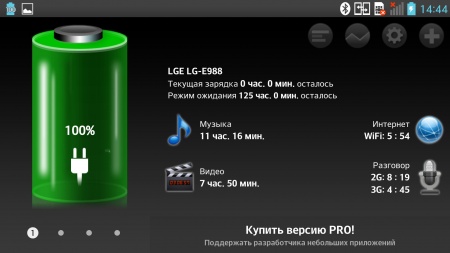 Тестирование при различных условиях проводилось при помощи утилиты «Батарея HD».