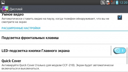 Традиционное для смартфонов LG меню уведомлений, которое состоит из двух лент, открывает пользователю быстрый доступ к наиболее часто используемым им приложениям.