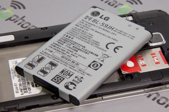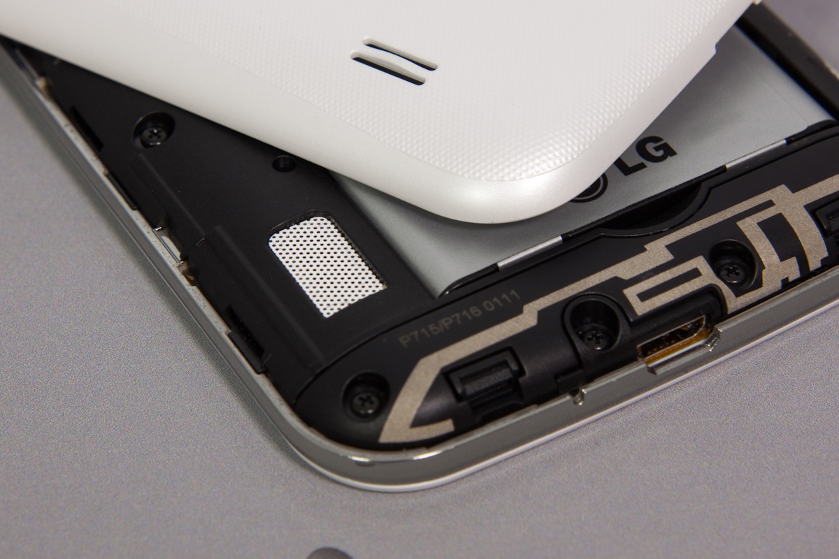 Расширение имеющегося объема также предусмотрено. Слот расположен под крышкой аккумуляторного блока. Доступ к нему обеспечивается, стоит только снять крышку. Так что «горячая» замена карт памяти здесь есть. LG Optimus L7 II Dual работает с карточками до 32 ГБ включительно. Аккумулятор и динамикиLG Optimus L7 II Dual получил достаточно неплохой аккумулятор – 2460 мАч. С автономностью в разных условиях мы знакомились при помощи тестера «Батарея HD». Результаты ниже.
