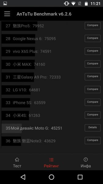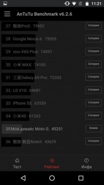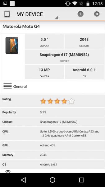 Обзор смартфона Moto G4: эволюция поколений!Moto G4 – одна из самых популярных моделей бренда линейки 2016-го года. При ценнике в $272 смартфон заключен в корпус с водоотталкивающим нанопокрытием, оснащен 5.5-дюймовым Full HD-экраном, 8-ядерным процессором Qualcomm и 13Мп камерой. В цифрах эволюция гаджета «4th Gen» в сравнении с предшественниками на лицо, ну а о том, что он собой представляет на деле, расскажем в обзоре. Комплект поставкиСмартфон поставляется в небольшой бело-оранжевой картонной коробке с большим изображением Moto G4 на фронтальной части и его спецификациями на тыльной. Из неожиданного в комплекте поставки только два переходника с nanoSIM карты на microSIM. В остальном стандартный набор из смартфона, инструкции пользователя, адаптера питания и кабеля microUSB. Правда, привычного USB-выхода нет, шнур к блоку припаян наглухо. Дизайн и функциональные элементыВыглядит Moto G4, возможно, не очень броско в доступных черной и белой расцветках, тем не менее, по части дизайна, как показало тестирование, это один из самых практичных в использовании смартфонов среднего класса. Первое и самое главное – водоотталкивающее нанопокрытие корпуса, защищающее гаджет от брызг воды. Одним словом, топить его, как Moto G3, нельзя, но под дождем или снегом использовать без последствий можно. Это особо актуально сейчас с наступлением зимы. Прочности конструкции смартфона добавляет также стекло Gorilla Glass 3, которым полностью прикрыта его передняя панель. Большая ее часть отдана под 5.5-дюймовый дисплей с экранными кнопками управления. Внизу обустроен также вывод микрофона. Вверх отдан под объектив 5Мп камеры, прорезь с аккуратным хромированным обрамлением, совмещающую разговорный и мультимедийный динамики Moto G4, датчики освещения и приближения. Тыльная панель смартфона имеет рельефное прорезиненное покрытие, на котором и отпечатки, и царапины появляются весьма неохотно. Кроме того, именно за счет него гаджет не скользит и не норовит выпасть из руки. Собран Moto G4 отлично, хотя корпус полностью пластиковый, а задняя крышка съемная. Под последней обустроен слот для карты памяти и два для microSIM-карт, а также аккумулятор на 3000 мАч без возможности самостоятельной замены. Что приятно, даже несмотря на достаточно емкую батарею, у Moto G4 не такие уж большие габариты и вес - 153x76.6x7.9-9.8 мм и 155 грамм. Он хорошо лежит в ладони, хотя и широковат для навигации одной рукой. К кнопке питания и качельке регулировки громкости большой палец дотягиваются легко, так как размещены они почти по центру правого торца. Они имеют довольно тугой ход, что предотвращает их случайные нажатия, а еще различаются тактильно, чтобы не путаться в них. Наряду с кнопками управления в рамку Moto G4 «под металл» встроен 3.5 мм аудиовыход на верхнем торце и порт microUSB на нижнем. Замечу, что обод не только отделает переднюю панель смартфона от задней, но и за счет закругленных граней улучшает эргономику. Что касается других элементов, то на тыльной панели Moto G4 находится микрофон шумоподавления, утопленный логотип бренда и наоборот приподнятая над корпусом и выделенная рамкой вставка, объединяющая двухцветную вспышку и объектив 13Мп камеры. Дисплей5.5-дюймовый экран Moto G4 имеет довольно широкие на сегодняшний день рамки, а вот к его качеству не придерешься. IPS-матрица обеспечивает широкие углы обзора и хорошую цветопередачу, картинка выгля