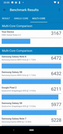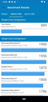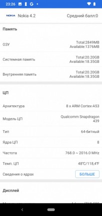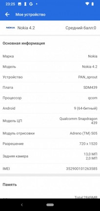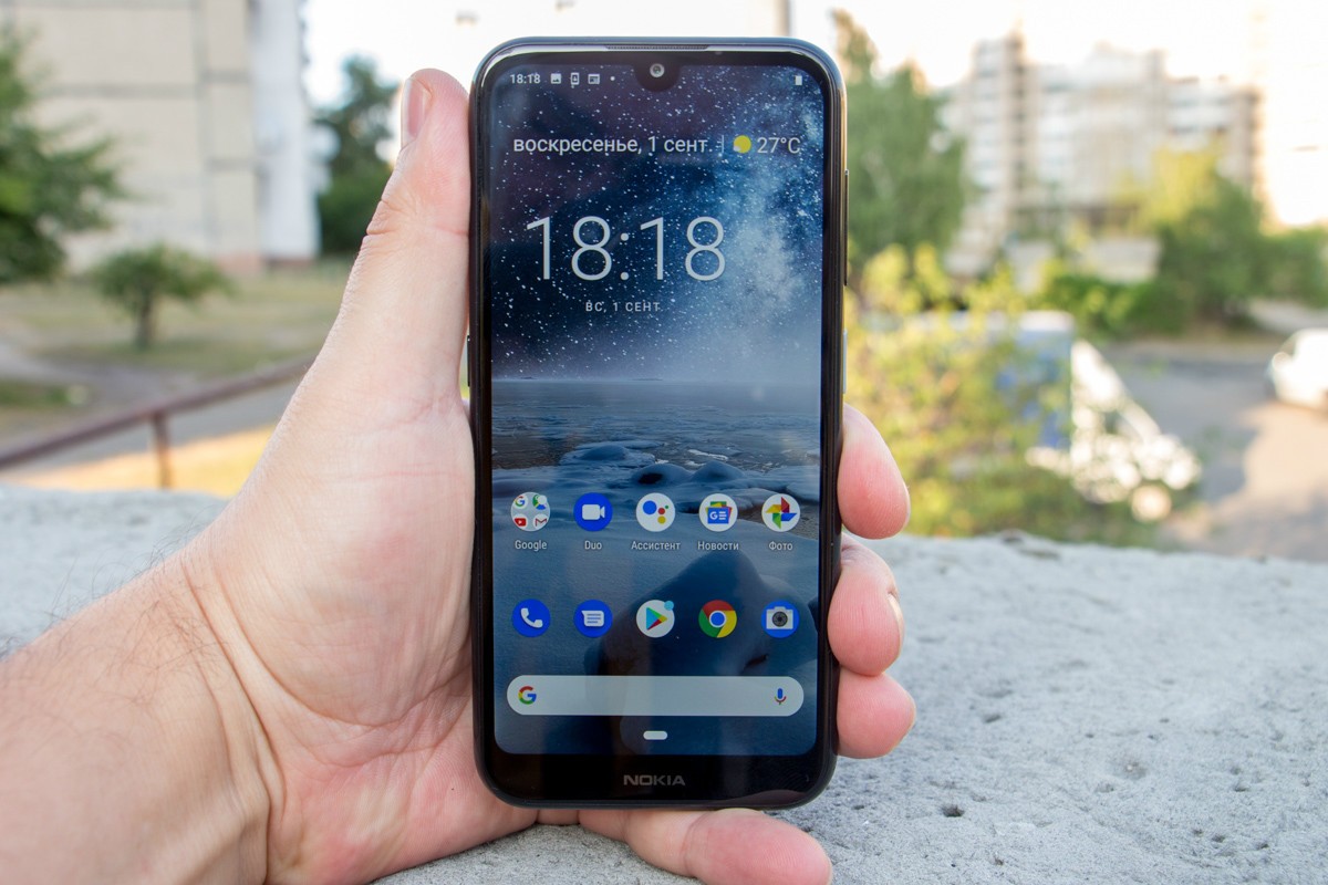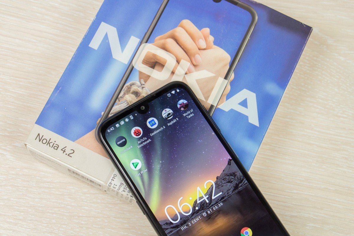 Обзор смартфона Nokia 4.2: красивый, долго работающий, хорошо снимающий и с NFCЕсли смартфон доступный по цене, значит покупатель идет на небольшой компромисс. С Nokia 4.2 немного по-другому. При ценнике до $150 телефон не получил USB Type-C порт и его экран меньше 6 дюймов. Но внутри корпуса упакованы хорошие камеры и емкая батарея, поддерживается NFC и оригинально реализован индикатор событий. Так что устройство оправдывает свой ценник. Почему? Узнаете из обзора. Дизайн и корпус Понравилось, что Nokia 4.2 не похожа на бюджетный смартфон. За 150 долларов некоторые аналоги все еще отталкивают своей внешность, а обозреваемый телефон нет. У Nokia 4.2 цельный металлический корпус внутри с поликарбонатной рамой, которая видна пользователю. Задняя панель из стекла. Габариты: 148,95 х 71,30 х 8,39 мм, вес 161 г. Тыльная стеклянная панель примагничивает к себе отпечатки пальцев, которые придется постоянно вытирать. Появляются они в процессе эксплуатации и от указательного пальца, которым не всегда с первого раза попадаешь на дактилоскопический сенсор. Срабатывает он не сверх быстро, но можно привыкнуть. При необходимости активируем распознавание лица. Корпус не противоударный, не имеет защиты от воды и пыли. Размещение портов и разъемов следующее: сверху разъем для наушников, микрофон, динамик, а также порт для зарядки Micro-USB внизу, отдельная кнопка Google Assistant слева, а клавиши управления громкостью и питанием справа. Отсутствие порта зарядки USB-C не разочаровывает, но настораживает. HDM, уже пора устанавливать его даже в бюджетных устройствах! Кнопка Google Assistant полезна лишь для тех, кто активно пользуется помощником. Ее можно отключить, но переназначить под свои запросы невозможно. Разъем для наушников порадовал, он присутствует и будет не лишним с учетом того, что основной динамик на максимуме не из самых громких. При этом качество звука приличное. По части уникального Nokia 4.2 интересная LED индикатором, который окружает клавишу питания. Ободок подсвечивается при получении уведомлений. Выглядит уникально, особенно в темноте. Было бы неплохо в следующей версии смартфона позволить владельцу настраивать цвет, потому что сейчас он только белый. Сборка корпуса на высоком уровне. Замечаний по подборке материалов нет. Дисплей HD+ a-Si TFT LCD экран обозреваемой Нокии не является чем-то особенным и примечательным. Он четкий и яркий, цвета реальные и контрастные. Разрешение 1520 x 720, так что если смотреть не в упор, то пиксели не увидите. Диагональ всего 5,71 дюйма, но этого не мало. Из-за того, что рамки по бокам тонкие, получаем как-бы большой дисплей в компактном корпусе. Скругленные края делают телефон удобным для удержания и управления одной рукой. Подсветки не всегда хватает днем, в солнечную погоду картинка немного тусклая, что затрудняет чтение с экрана. Олеофобное покрытие присутствует. Сверху реализован вырез в форме капли под фронтальную камеру. Это обеспечивает соотношение сторон 19:9. Снизу внушительный «подбородок». По-моему, он не портит лицевой панели, так что дизайн Nokia 4.2 выглядит современно. Аппаратная начинка Процессор в Nokia 4.2 - Qualcomm Snapdragon 439, который не выделяется высокой производительностью и может сдерживать некоторых покупателей от покупки этой модели. Его дополняют 3 ГБ оперативной памяти и 32 ГБ встроенной. Графика Adreno 505. Память можно расширить картами объемом более 256 ГБ. OTG под