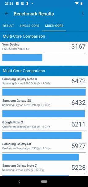 Обе камеры снимают видео в FullHD разрешении. Детализацию и цветопередачу на роликах можете оценить ниже. Аккумулятор Напоследок о батарее. Ее емкость 3000 мАч. Эта цифра не впечатляет, но чипсет с низким энергопотреблением и экран с низким разрешением гарантируют, что телефон проработает дольше одного дня. При очень интенсивном использовании у смартфона может остаться 15-30 процентов заряда перед тем, как вы пойдете спать и поставите его на зарядку. При не очень сильной загрузке трубка вытянет 2 дня полноценной работы, которая включает в себя: звонки до 30 минут, 1 час социальных сетей, 1 час просмотра видео или игр. Если у покупателя запрос только на просмотр видео в Youtube, тогда на максимальной яркости дисплея и всех включенных радиомодулях устройство протянет 7,5 часов. Зарядка до 1 до 100% занимает 3 часа от комплектного ЗУ на 5В/1А. Это не быстро, но единственное упущение, которое важно отметить – порт зарядки и синхронизации Micro USB, а не USB Type C. Выводы Nokia 4.2 – смартфон с привлекательной внешностью, который гарантирует отличную для своих габаритов автономность, хорошие камеры и поддержку Android One. Корпус в стекле, так что не забывайте про чехол, если бережливым владельцем себя не считаете. Выбор покупателя может сдерживать слабый процессор, но для начала определите задачи, которые вы ставите перед смартфоном. Возможно, рассматривать конкурентов даже не имеет смысла. Ведь при цене до $150, к выше перечисленным плюсам, добавлю поддержку NFC и оригинальный LED индикатор на кнопке питания.