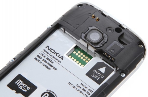 значительно расширить свободное пространство. Nokia 603 поддерживает все необходимые стандарты связи. Кроме 2G/3G-сетей смартфон умеет подключаться к Wi-Fi точкам, используя протокол 802.11n. Bluetooth версии 3.0 позволит обмениваться различными данными, а поддержка USB On-The-Go предусматривает возможность подключения к телефону различных накопителей. Ими станут не только USB-flash, но и полновесные HDD. ![]() ![]() ![]() В комплекте нет переходника для microUSB, поэтому в случае