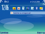 Функциональные кнопки смартфона имеют большие размеры, достаточные для того, чтобы назвать их удобными. Пятипозиционный джойстик, как и все джойстики в телефонах Nokia, ходит очень туго. На первых порах с его помощью не всегда удается выбирать, например, правильное направление движения курсора и т. п. Несмотря на большое количество кнопок, подсветка однородна подо всеми участками клавиатуры. При входящем вызове или сообщении помимо подсветки загорается световой индикатор, расположенный в левом верхнем углу над дисплеем. Меню аппарата традиционно для устройств на базе ОС Symbian OS 9.1 с интерфейсом S60 третьей редакции. Есть правда некоторые отличия, которые обусловлены альбомной ориентацией дисплея. Например, на рабочем столе расположено не шесть, а семь ярлыков быстрого запуска. Локализация в этой версии Symbian выполнена на высоком уровне, в меню поддерживается русский и украинский языки. При этом сокращения встречаются очень редко, а при вводе параметров электронной почты или веб-адреса раскладка автоматически переключается на английский язык. Элементы меню отображаются с высокой скоростью, которая, правда, может снижаться при выполнении нескольких задач в фоновом режиме (например, загрузки веб-страницы).