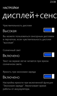 Яркость дисплея регулируется как автоматически, так и вручную. На максимальном ее уровне изображение на экране смартфона даже при попадании на него ярких солнечных лучей особо не выцветает, что, конечно же, большой плюс. Но он достаточно сильно бликует, возможно, проблема в отсутствии поляризационного слоя ClearBlack, который, к слову, имеет Lumia 620.