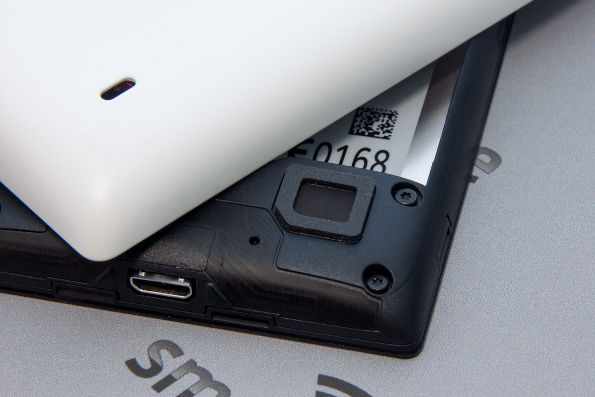 Верхний торец занял 3,5 мм аудиоразъем, а нижний разъем micro-USB. Тыльную панель разделили между собой глазок 5Мп камеры, прорезь динамика громкой связи и логотип компании-производителя.