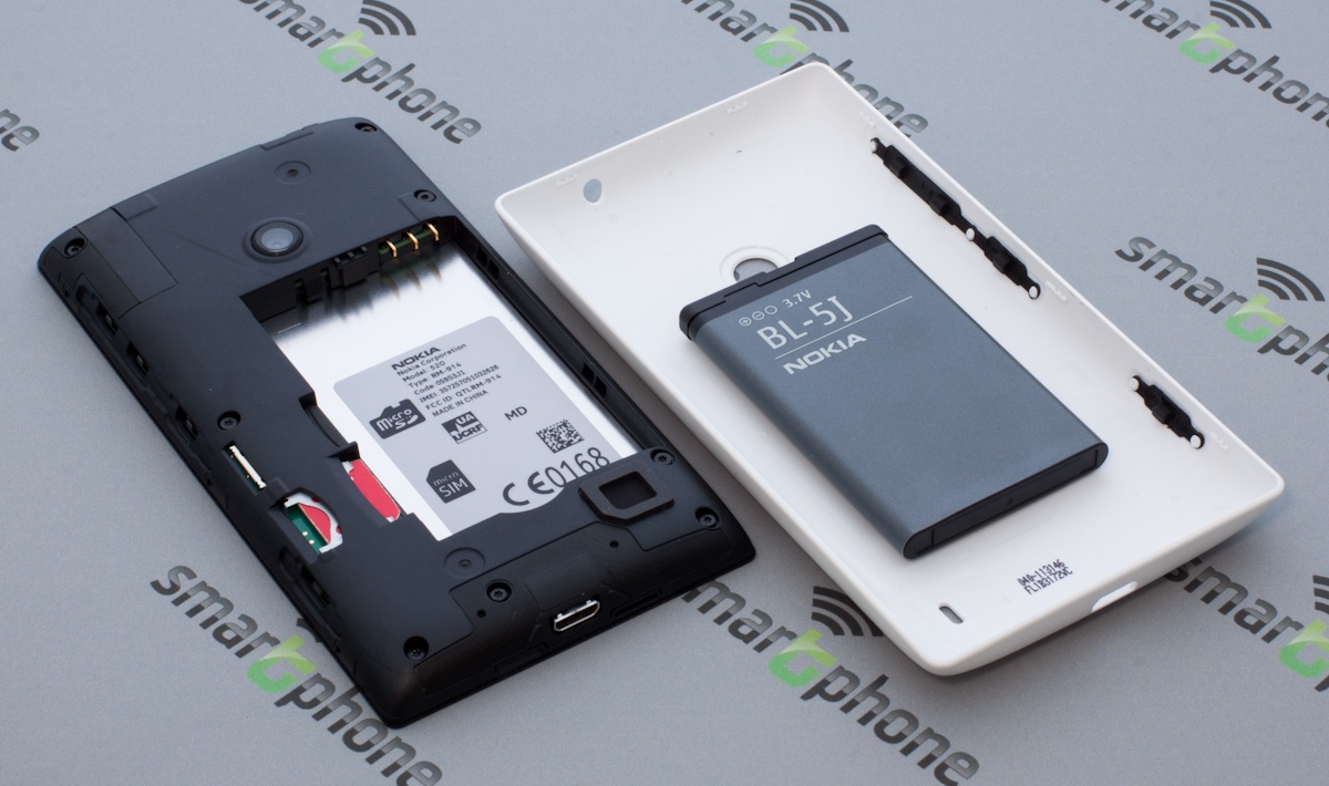Под крышкой смартфона находятся слоты для карт памяти формата MicroSD и micro SIM, а также съемный аккумулятор.