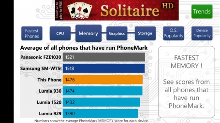 «Железо», хотя и не «топовое» на сегодня, тем не менее, обеспечивает отличную производительность WP-смартфону — воспроизведение Full HD-видео, плавная работа интерфейса, шустрый веб-серфинг, быстрый запуск приложений и отсутствие подтормаживаний даже в самых ресурсоемких играх. Вот только под игровой нагрузкой смартфон ощутимо нагревается в нижней части.