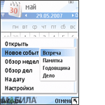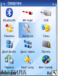 МенюТелефон работает на базе платформы Symbian OS 9.2 3rd Edition. Интерфейс практически ничем не отличается от других моделей на базе как этой версии ОС, так, впрочем, и Symbian OS 9.1. Различия могут быть только среди элементов меню. Поэтому подробно на меню останавливаться не будем. Пункты меню: