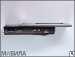Клавиши цифрового пада также удобны в использовании, они позволяют набирать текстовые сообщения на больших скоростях. Единственным недостатком можно назвать слишком тесное расположение, между ними практически нет просветов. Кроме того, цифровая клавиатура выглядит ненадежной — у кнопок есть заметный люфт. Дополнительные клавиши расположены только на правой боковой стороне корпуса N95. Сверху вниз это кнопка-качель регулятора громкости, кнопка быстрого перехода к галерее изображений или видео, а также кнопка активации/спуска фотокамеры. Четыре кнопки управления медиаплеером доступны при открытии слайдера вниз. Слева направо это клавиши возврата к предыдущему треку (или перемотки назад при длительном нажатии), кнопка остановки воспроизведения, воспроизведения/паузы и клавиша перехода к следующему треку (или перемотки вперед при длительном нажатии). Сверху кнопки обозначены только пиктограммами, они скрываются под листом мягкого пластика и практически не ощущаются под пальцами. Это не очень удобно, не всегда получится, например, остановить воспроизведение, не вынимая смартфон из кармана. На левой боковой стороне сверху вниз размещены: защищенный металлической сеткой динамик (такой же находится с противоположной стороны), 3,5-миллиметровый аудиоразъем, инфракрасный порт и прикрытый заглушкой слот для карт памяти MicroSD. На данный момент заявлена поддержка карт памяти объемом до 2 ГБ. На верхнем торце расположена кнопка управления профилями аппарата, которая при длительном нажатии также позволяет включать/выключать смартфон. На нижнем торце нашлось место для разъема для тонкого зарядного устройства, микрофона, порта miniUSB и ушка для ремешка.