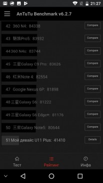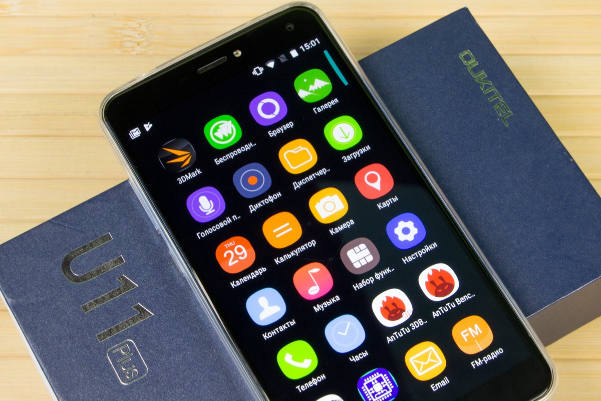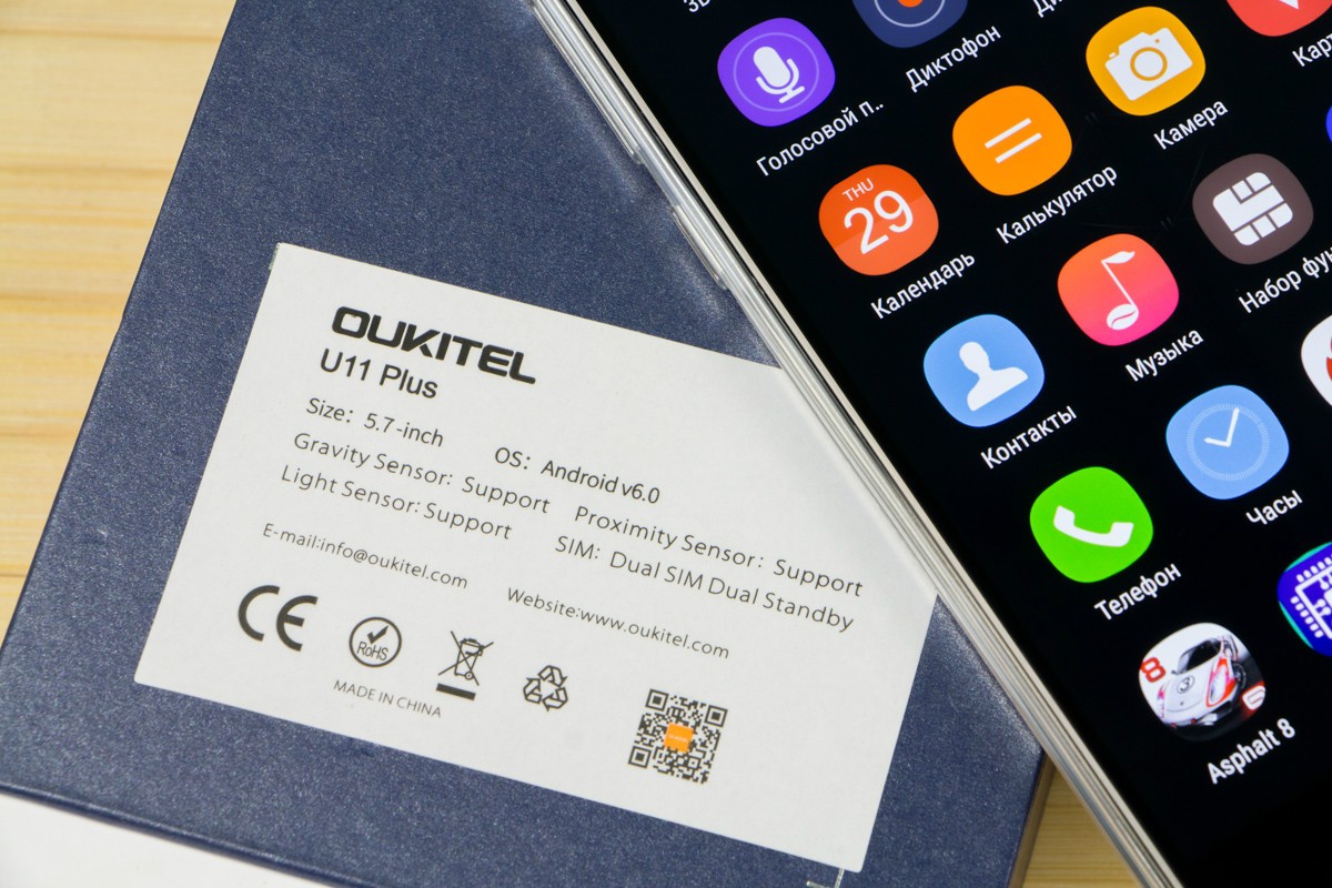 Обзор смартфона Oukitel U11 Plus: 5.7-дюймовый фаблет с 4 ГБ ОЗУКомпания Oukitel расширила линейку доступных фаблетов новинкой U-серии – 8-ядерным U11 Plus с 5.7-дюймовым Full HD экраном, аккумулятором на 3700 мАч, биометрическим сенсором и двумя 16Мп камерами со светодиодными вспышками. Казалось бы, чего еще можно желать от смартфона за $160. Но поверьте, Oukitel U11 Plus есть еще чем удивить, об этом и расскажем далее. Комплектация Oukitel U11 Plus поставляется в симпатичной картонной коробке темно-синего цвета, на лицевой части которой указана модель, а на тыльной в виде наклейки обозначены ее ключевые технические характеристики. Комплектацию смартфона нельзя назвать уж очень богатой. Тем не менее, наряду с адаптером питания, кабелем microUSB-USB, инструкцией пользователя и скрепкой для открытия лотка для карты памяти и сим-карт в ней нашлось место и прозрачному силиконовому чехлу. Дизайн и функциональные элементы Хотя я бы категорически не стала пользоваться чехлом в случае с Oukitel U11 Plus, так как он ухудшает визуальное восприятие смартфона. А выглядит модель симпатично. По периметру ее корпуса проходит массивная металлическая рамка. На одном из торцов она имеет зеркальный срез, а на другом специальные скосы, придающие ей закругленную форму и, соответственно, не дающие ей неприятно впиваться в руку. Еще один плюс в копилку эргономики – покатая тыльная панель из пластика черного или белого цвета с рифленой текстурой в виде концентрических кругов. Благодаря ей девайс удобно удерживать рукой и он абсолютно не скользит. Единственный нюанс - в бороздки между кругами набиваются соринки, вот в этом случае чехол будет как нельзя кстати. Из-за 5.7-дюймовоо экрана, немалого количества металла в отделке, а также емкой батареи на 3700 мАч U11 Plus по современным меркам откровенно большой и тяжелый - 154.7х79.2х8.8 мм при весе 220 г. Его корпус неразборной, не скрипит при сдавливании и скручивании, в руке чувствуется монолитно. Гибридный слот для двух SIM-карт и карты памяти обустроен на правом торце, а кнопка питания и клавиша регулировки громкости на левом. Дотянутся до них без перехвата телефона, учитывая его немалые габариты, проблематично. Верхний торец U11 Plus занимает 3.5 мм аудиовыход, а нижний microUSB порт, вывод микрофона и мультимедийный динамик. Он здесь один, хотя решеток под него две. Вторая, судя по всему, для симметрии. Прорезь разговорного динамика традиционно расположена над экраном. Там же у тестируемой модели находятся датчики освещения и приближения, LED-индикатор событий и объектив 16Мп фронтальной камеры со вспышкой. Фотомодуль аналогичного разрешение обустроен и на тыльной панели U11 Plus. Сзади также размещена двойная светодиодная вспышка и круглая площадка сканера отпечатков пальцев. Биометрический сенсор утоплен в корпус, имеет зеркальный ободок и текстуру, отличающуюся от поверхности задней крышки смартфона, поэтому легко нащупывается даже вслепую. Используется он в тестируемой модели для разблокировки, подтверждения покупок и входа в приложения, срабатывает быстро и точно. Дисплей Работать с 5.7-дюймовым экраном U11 Plus в большинстве случаев придется двумя руками, так как режим управления одной рукой не предусмотрен настройками, а габариты не позволяют дотянуться до всех уголков дисплея так, чтобы телефон не выскользнул из ладони. По всем остальным параметрам экран U11 Plus хорош. LTPS LC