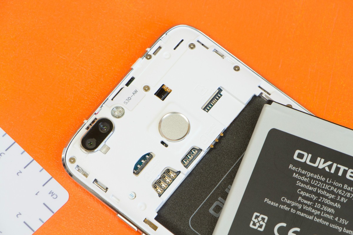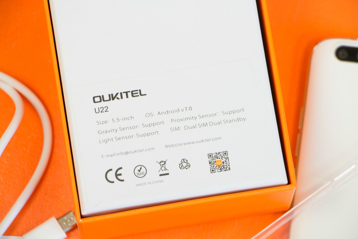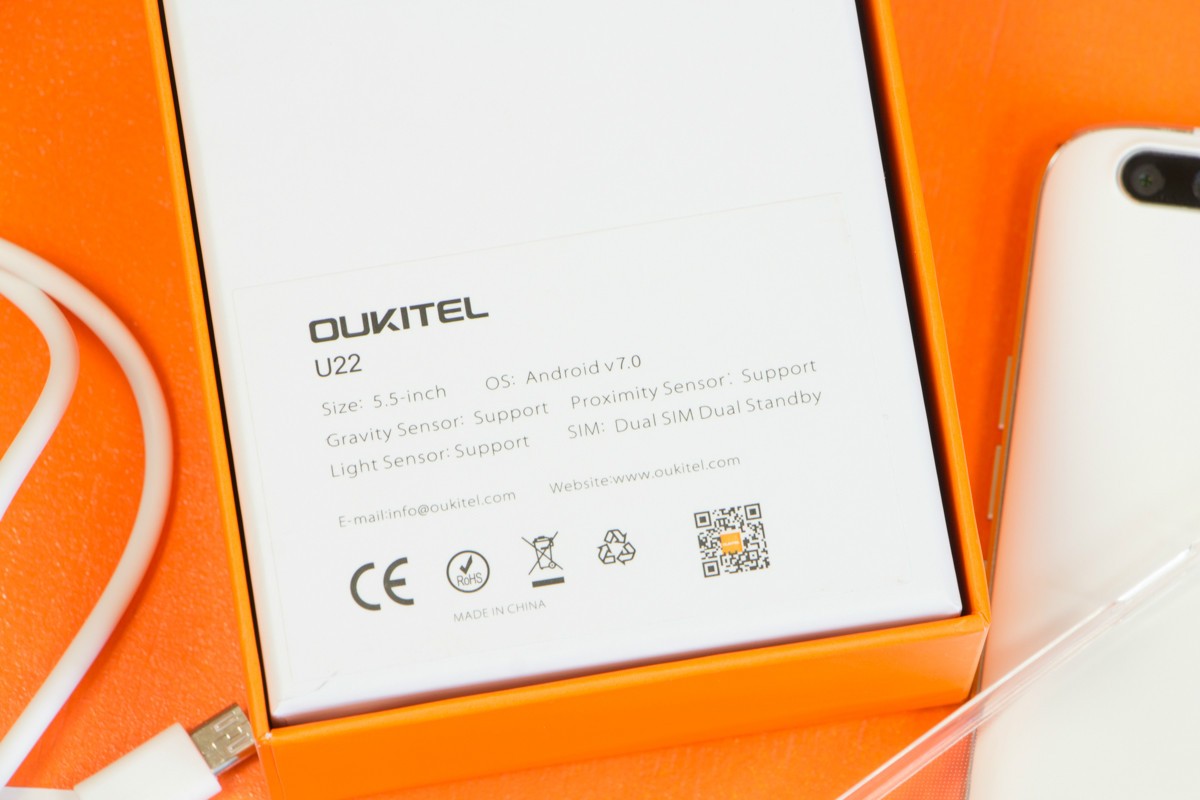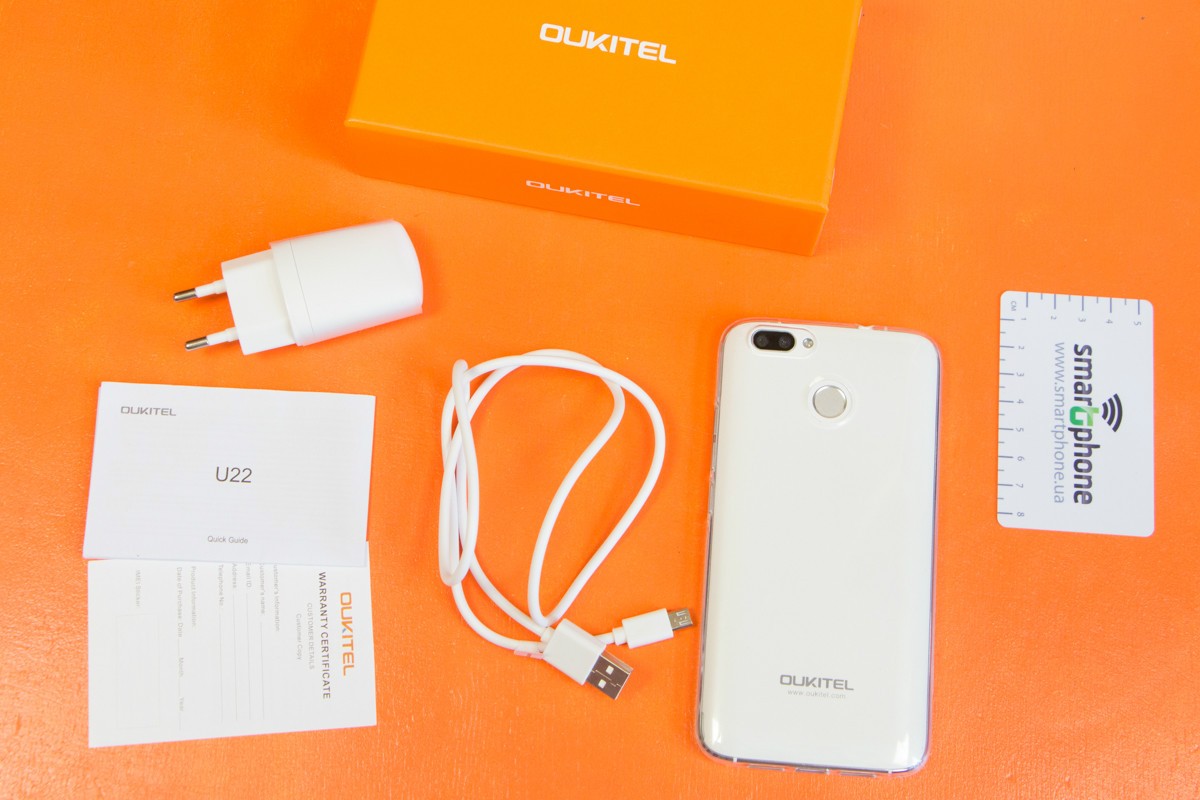 Обзор смартфона Oukitel U22 – четыре камеры за $70!Oukitel U22 – первый смартфон бренда с четырьмя камерами: двойной фронтальной на 2Мп и 8Мп, и двойной основной на 2Мп и 13Мп. Ценник в $70 предусматривает также 5.5-дюймовый IPS-экран, многофункциональный сканер отпечатков пальцев, поддержку двух SIM-карт и карт памяти. На бумаге выглядит довольно многообещающе, а как дела обстоят на практике, расскажем далее в обзоре. Комплектация Поставляется Oukitel U22 в компактной коробке фирменного оранжевого цвета. Из информативных материалов на ней лишь небольшая наклейка с кратким перечнем спецификаций смартфона, ну и, собственно, его название. А вот внутри коробки, помимо самой трубки, пользователь может найдет адаптер питания, кабель microUSB-USB, инструкцию по эксплуатации и силиконовый чехол. Аксессуар прозрачный, поэтому выполняя защитную функцию, он нисколько не скрывает всех прелестей дизайна модели. Дизайн и функциональные элементы А главной «фишкой» внешности Oukitel U22 лично я бы назвала гармоничное сочетание массивной рамки из матового металла с красиво переливающейся на солнце тыльной панелью из глянцевого пластика белого или черного цвета. Да, материал маркий и скользящий в руке, но, как уже упоминала ранее, эта проблема легко решается чехлом из комплекта поставки. Габариты Oukitel U22 составляют 154x76x9.6 мм при весе 149 грамм. Однако за счет аккуратных зеркальных срезов на торцах металлической рамки выглядит он не таким большим, как мог бы, плюс удобно ложиться в руку. На его правой боковушке производитель разместил металлические клавиши регулировки звука и кнопку питания. Причем на такой высоте, что большой палец до всех них в большинстве случаев дотягивает без необходимости перехвата устройства в руке. Верхний торец Oukitel U22 занимает 3.5 мм аудиовыход, а нижний вывод микрофона, порт microUSB и две решетки, за одной из которых спрятан мультимедийный динамик. Прорезь разговорного динамика традиционно обустроена над экраном смартфона рядом с датчиками освещения и приближения и в случае с U22 сразу с двумя объективами селфи-камеры со светодиодной вспышкой. Под дисплеем находятся сенсорные кнопки управления без подсветки, что вызывает определенные неудобства в темное время суток. На тыльной панели смартфона внимание обращает на себя двойной фотомодуль со вспышкой и сканер отпечатков пальцев. Для удобства использования последний утоплен в корпус и имеет шероховатую текстуру, а для красоты получил зеркальный обод. Датчик запоминает до 5 отпечатков, срабатывает быстро и четко. Помимо этого ключевой его особенностью является многофункциональность. Кроме разблокировки смартфона с помощью биометрического сенсора можно делать фото, отвечать на звонки, управлять аудио и видеоплеером, а также использовать его в качестве кнопки «Назад». Oukitel U22 хорошо собран, зазоров и люфтов нет, даже при сильном сдавливании его корпус не скрипит, хотя задняя крышка съемная. Под ней спрятаны три отдельных слота – под карту памяти и две сим-карты форматов nano и micro, а также аккумулятор на 2700 мАч. Автономность Одного полного заряда батареи смартфона емкостью 2700 мАч при 100% яркости подсветки экрана хватает в среднем на 6 часов автономной работы в режиме воспроизведения HD- видео или 2,5-3 часа игры. При умеренной эксплуатации, яркости дисплея в 50% и отключении не нужных в данный момент модулей бе