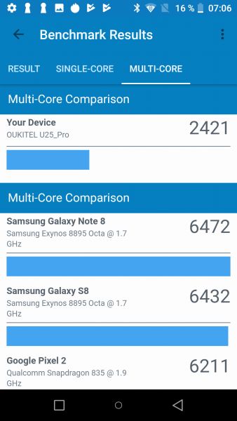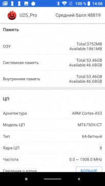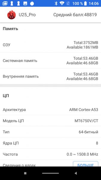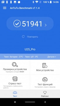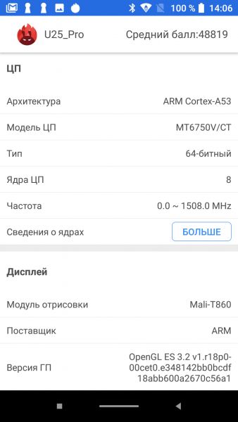 Обзор бюджетного смартфона-GAMEфона Oukitel U25 Pro: много памяти за мало денегВ этом обзоре в деталях тестируем смартфон Oukitel U25 Pro. Цена 110 долларов, но внутри 4 ГБ оперативной памяти. А еще простенький FullHD дисплей, батарея на один день и не совсем актуальный для 2019 года 8-ядерный процессор. Как смартфон справляется с тяжелыми игрушками, какие в реальности материалы корпуса и стоит ли на него обращать внимание при покупке – узнаете из обзора. Комплект поставки Oukitel U25 Pro запакован в коробку с классическими для этого китайского бренда цветами. Внутри зарядка, металлическая скрепка для извлечения лотка под SIM карты/карты памяти, переходник на 3,5 мм, гарантийный талон и силиконовый бампер. За чехол отдельное спасибо. Найти у нас в продаже его отдельно было бы очень сложно. Дизайн и корпус За окном 2019 год, а у Oukitel U25 Pro на лицевой стороне ничего трендового. Возможно, это даже к лучшему, покупатели на классику есть всегда. Тыльная крышка, как бы, выделяется двойной камерой. Но внешность простая, даже особенный цвет не делает ее интересной. Потому что градиента почти не видно. Ну по крайней мере я не вижу. Расположение элементов управления удобное. Кнопки справа, SIM карты слева, сверху ничего. Внизу Type-C порт, а вот 3,5 мм выхода нет. USB Type-C порт уже почти стал массовым и это плюс. Тыльная сторона ничем особо не удивит. Разве что отпечатками пальцев на глянцевой панели. Их видно, но и вытираются они просто. Сканер большой, его легко отыскать пальцем. На качество сборки жаловаться не буду, оно хорошее. Экран вклеен точно и без перекосов, при сжатии ничего не скрипит и не болтается. Для справки, в продаже доступна темно-серая расцветка корпуса. Дисплей Экран, как по мне, немного зеленит. И через настройки это никак не исправить. Регулировки цветовой температуры нет. А вот разрешение понравится – FullHD при 5,5 дюймах. Заявлено, что матрица от LG и сверху прикрыта защитным стеклом Asahi glass. Хочется в это верить, но защитная пленка, которая идет из коробки, хотя бы на первое время точно не помешает. Углы обзора у дисплея средние, яркости днем без избытка, а вот для полной темноты ее можно было сделать еще меньше. Мультитач поддерживает до 5 одновременных касаний. Олеофобного покрытия нет. Так, что за экран ставлю оценку 6 из 10. Аппаратная начинка Исходя из железа, которое подобрали инженеры для Oukitel U25 Pro, этот смартфон можно назвать достойным своей цены. Проверил, конкурентов нет, особенно с учетом FullHD дисплея. За вычисления отвечает процессор Meditek MT6750T с 8 ядрами на 1,5 ГГц. Графический чип – Mali-T860, оперативной памяти 4 ГБ. Последняя не из самых быстрых, но интерфейс работает без задержек, PubG Mobile и другие требовательные игрушки запускаются, пусть даже и не на самых простых настройках детализации. В Antutu U25 Pro набирает почти 52 тыс. баллов. Достойный результат при ценнике в 110 долларов. По части работы в сетях мобильного оператора нареканий нет. Чипсет поддерживает сети от 2G до 4G. Беспроводные модули представлены Bluetooth 4.0 и Wi-Fi 802.11 b/g/n. GPS есть в обязательном порядке. Sim формата nano, вместо одной из них устанавливается карта памяти объемом до 128 ГБ, что значительно расширяет возможности встроенного накопителя на 64 ГБ. Звук Разговорный динамик хороший, не более того. Это же могу сказать и про мультимедийный. Да, он громкий, но на этом все. Ни низов, ни высоких тонов не прослушивается. Аккумулятор Мне 