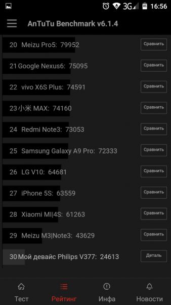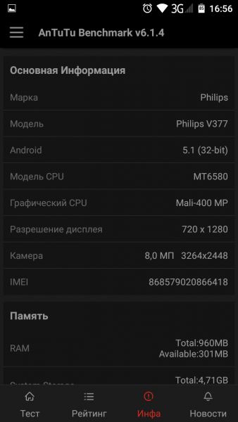 Обзор смартфона Philips Xenium V377: середнячек с 5000 мАч за $120Под брендом Philips выпускаются две линейки смартфонов. У одних есть приставка Xenium, а у других нет. Для тех покупателей, кому нужно долгое время автономной работы, нужно смотреть только в сторону первых. Вот мы и предлагаем познакомиться со смартфоном Philips Xenium V377, емкость аккумулятора которого 5000 мАч, а цена не превышает 3000 грн. Подробности в нашем обзоре. АккумуляторГлавная особенность модели Xenium V377 - емкий аккумулятор. Вот с этой функции и предлагаем начать наш обзор. Сначала в качестве справочной информации приведем данные, которые предоставил сам производитель. Он заявляет, что литий-ионная батарея на 5000 мАч способна поддерживать работоспособность смартфона в режиме разговора в течении 29 часов. На практике это три полных дня по 9-10 часов при значительной нагрузке. Реальное использование показало, что такие цифры имеют место быть. При 2 часах проигрывания видео, 3 часах прослушивания музыки, 1-2 часах серфинга в сети и проверки почты, 30 минутах разговора и постоянных ответов в мессенджерах Xenium V377 продержался 3 полных дня. Если использовать трубку более скромно, то ею можно пользоваться 5 полных рабочих дней без подзарядки. Только нужно учесть, что стоит в обязательном порядке включать режим энергосбережения. Для его активации можно использовать соответствующий раздел в настройках или отдельную кнопку на левом торце. Она очень похожа на переключатель в беззвучный режим, который используется на iPad. Для справки, компания Philips заявляет о 1100 часах работы в режиме ожидания. А это без малого 46 дней. У нас устройство на тесте было не так долго, но некоторую полезную статистику мы все-таки собрали. - 30 минут игры в Asphalt 8 - 6% - 2,5 часа прослушивания аудио в наушниках - 1% - 2 часа прослушивания аудио через динамик - 1% - 30 минут просмотра видео Youtube – 4% - 1 час просмотра HD видео в плеере – 7% Во всех замерах яркость была выставлена на максимум, включен Wi-Fi и выключен режим экономии энергии. Стоит также привести данные по части скорости зарядки смартфона. В лучшем случае это занимает не менее 5,5-6 часов. Если подключаетесь к компьютеру или ноутбуку через USB 2.0 порт, то может занять 9-10 часов. Дизайн и корпусЕсли батарея Philips Xenium V377 вам подходит, то самое время посмотреть на его корпус. Он пластиковый, в комбинации черного и яркого красного цвета «под металлик». Сочетание броское и сильно выделяет его на фоне конкурентов. Выглядит это красиво. Ведь на первый взгляд кажется, что обод действительно металлический. На переходе к дисплею есть глянцевая вставка, которая выполняет и декоративную и защитную функции. На правом торце разместили две кнопки, вверху 3,5 мм аудиоразъем, внизу микрофон и порт microUSB. В качестве источника уведомлений помимо звука можно пользоваться цветным LED индикатором. Он расположен в правом верхнем углу экрана. Динамик громкой связи и камера со вспышкой находятся на обычных местах - тыльной стороне. Обод фотомодуля из металла. Это неокрашенный алюминий, который красиво поблескивает посреди матового черного окружения. В руке смартфон держать приятно. Этому способствует не только задняя крышка из софт-тач пластика, но и сравнительно небольшие габариты. Высота и ширина трубки сопоставима с одноклассниками по 5-дюймовому экрану. А вот толщина за счет большой батареи, конечно же, больше - почти 11 