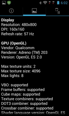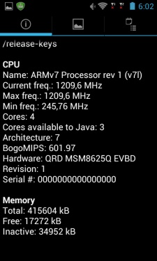 Аппаратно внутри 4-ядерный ARM Cortex A5, тактовая частота которого 1,2 ГГц, а также 512 МБ оперативной памяти и графика Adreno 203.