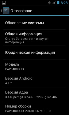 Работает смартфон под управлением операционной системы Android 4.1.2 «из коробки».
