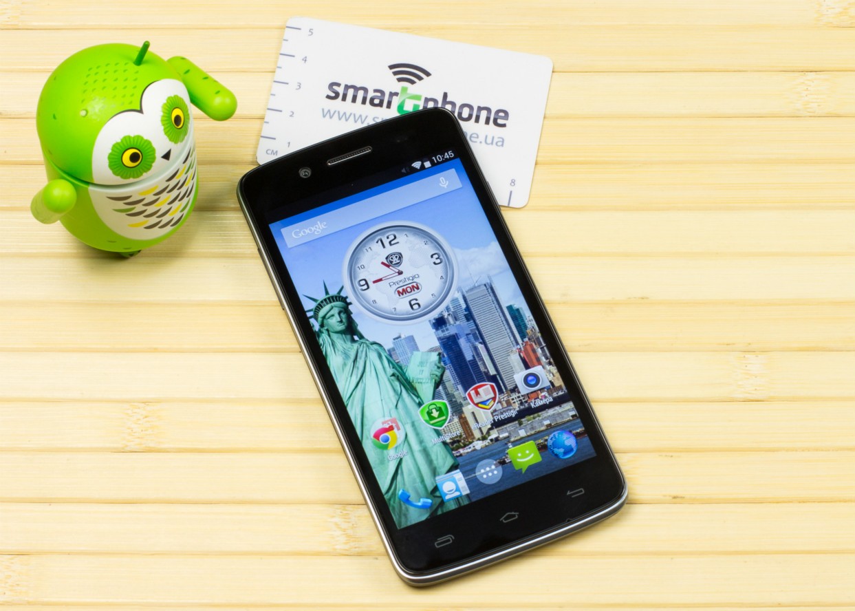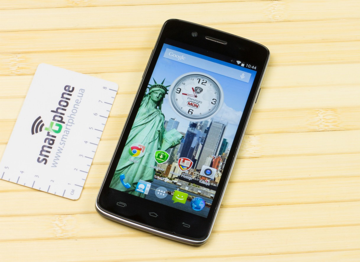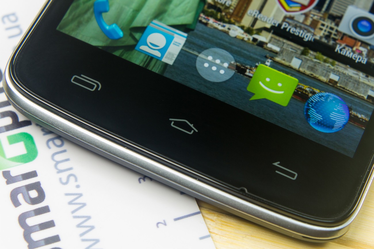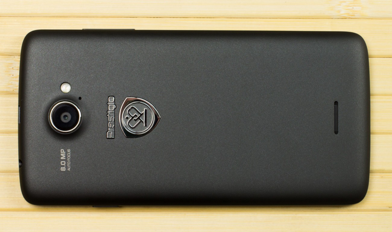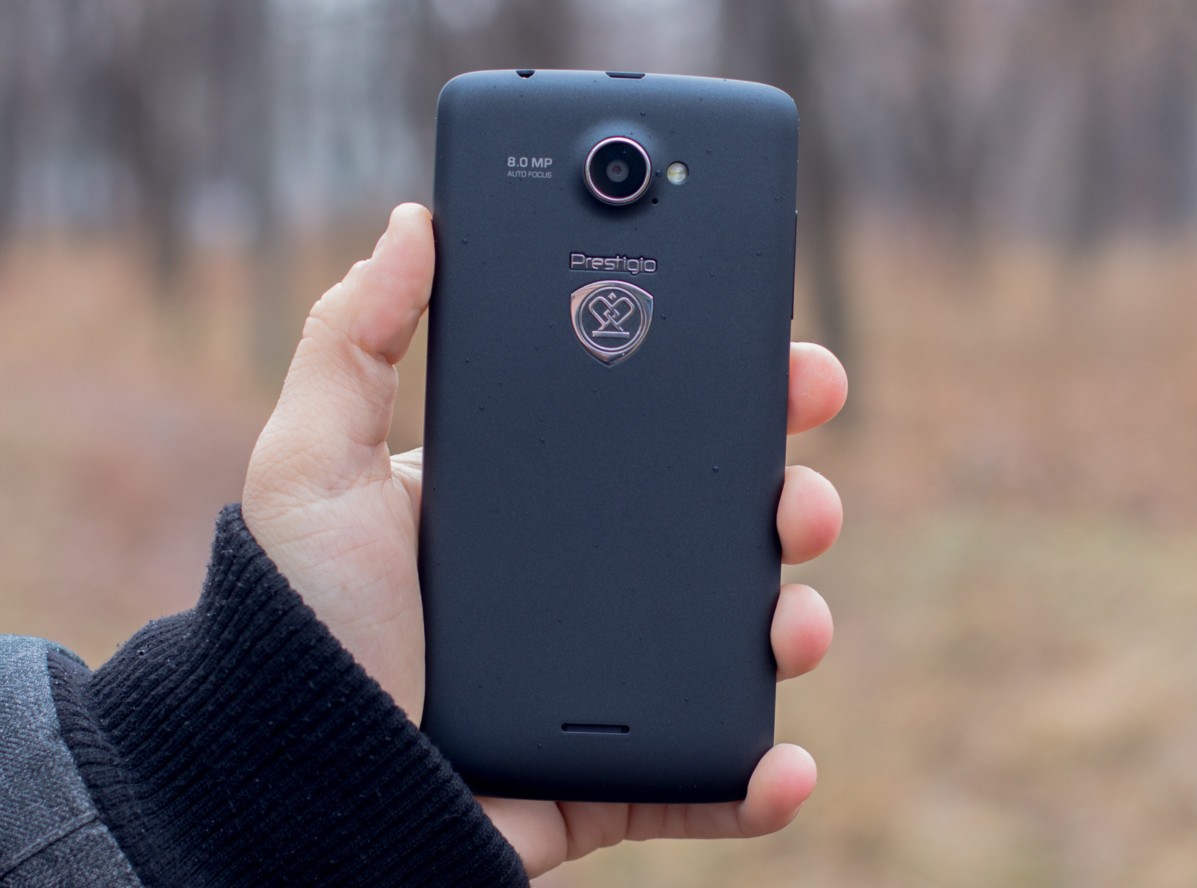 Дизайн и корпусВ плане дизайна тестируемый смартфон - больше рабочая лошадка, нежели икона стиля. Строгая классическая моноблочная внешность хорошо подчеркнута серебристой вставкой по всему ободу. Она разделяет лицевую часть, прикрытую стеклом Gorilla Glass, от фронтальной. Дополнительно экран защищается еще и корпусом. Последний немного выступает над дисплеем, чем помогает избежать трещин и прочих неприятностей, вызванных падениями. Металл в отделке не используется. Задняя крышка не глянцевая и не обычный софт-тач, на котором сразу после касания видны отпечатки пальцев. Это своего рода комбинация из приятного на ощупь не скользкого пластика с небольшой и едва видимой структурированной поверхностью. При определенном освещении может показаться, что цвет его даже и не черный, а насыщенный серый. Следы от касаний на нем не видны и из руки этот софт-тач смартфону выскользнуть не дает. Так что по части подбора материалов ставим оценку отлично. Сборка также на хорошем уровне. Добавлю, что на рынке еще доступна аналогичная нашей модель, но только в белом цвете. Исходя из стоимости Prestigio MultiPhone 5507 DUO, требовать от производителя узких рамок и минимальной толщины в нашем случае будет лишним. При весе в 160 грамм, что не так уже и мало, управлять на ходу смартфоном, держа его в одной руке, не очень просто, особенно, если пальцы у Вас не длинные. Есть проблема с тем, чтобы без перехвата дотянуться до сенсорных клавиш под дисплеем. Хотя, отмечу, что расположение кнопок питания и регулировки громкости удобное. Они соответственно справа и слева на ребрах, на одном уровне. Что касается остальных функциональных элементов, то на верхнем торце 3,5 мм аудиоразъем и порт microUSB, на ободе лицевой части микрофон, над дисплеем фронтальная камера на 2 МПикс. и датчики освещенности и приближения. С тыльной стороны по центру на пьедестале, украшенном серебристым ободом, расположили основную 8 Мпикс. камеру, одинарную вспышку и микрофон. В нижней части - прорезь под динамик громкой связи. Звучит он, кстати, под стать стоимости трубки. Во всем диапазоне звук ровный, без особых заходов в низкие и высокие частоты. А вот к разговорному динамику нет никаких претензий. Максимальной его громкости достаточно для разговоров даже в метро. Посторонние шумы и хрипы отсутствуют. Под задней крышкой расположился съемный аккумулятор, два слота под SIM-карты формата Mini и один для карт памяти. Так что пользователь на свое усмотрение может без труда расширить предлагаемое компанией хранилище из 5 ГБ до минимум 64 ГБ. Карты большего объема у нас просто не нашлось. Не забываем и о возможности использовать 200 ГБ бесплатного облачного хранилища Prestigio MultiCloud. Важно отметить, что поменять карту без того, чтобы снять аккумулятор, возможности нет. Аналогично и с симками. ДисплейКогда впервые включаешь смартфон, приятно удивляет хороший дисплей. Используется 5-ти дюймовая IPS-матрица с отличными углами обзора. Как трубку не крути и цвета, и видимость картинки остается на высоком уровне. На солнце информация с экрана читается, но только на максимальном уровне яркости. Заметил, что диапазон регулировки подсветки не очень большой. Перед сном, когда просматриваю интересные новости за день в полной темноте, мне не хватает ее минимума. Хотя, скорее всего, это проблема прошивки и со временем ее исправят. Сенсорн