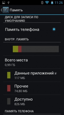 Официально Prestigio PAP4505 DUO получил 4 ГБ встроенной памяти. Пользователю с этого объема доступно чуть больше 2,5 ГБ: 1,54 ГБ – память телефона, 0,99 ГБ – встроенный flash-накопитель.