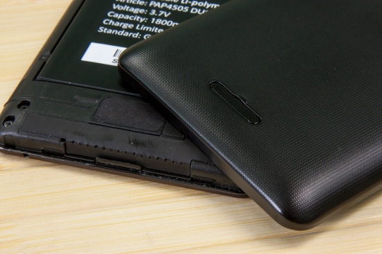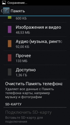 Расширение имеющегося объема доступно посредством карт памяти MicroSD до 32 ГБ включительно. Слот расположен таким образом, что вставить в него карту памяти без того, чтобы не вытащить изначально аккумулятор, пользователь сможет, а вот совершить обратное действие, нет, поскольку карточка будет упираться в стенку аккумулятора. Кроме того, после того, как вы вставите карту памяти, система потребует перезагрузку.