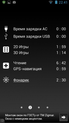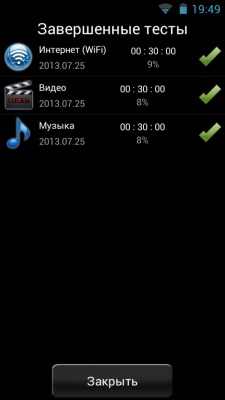 Тестирование автономности было проведено при помощи тестера «Батарея HD».