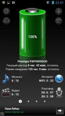 По части беспроводных модулей и интерфейсов отмечу Wi-Fi 802.11 b/g/n, USB 2.0, Bluetooth 4.0, VPN и многое другое. Есть также 3G, как, впрочем, у всех других смартфонов Prestigio и поддержка dual-SIM. Ни первое, ни второе не козырь, конечно же, но факт их наличия приятен.