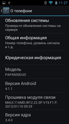 Prestigio PAP4505 DUO работает под управлением операционной системы Android 4.1.1. Об обновлении до более свежего релиза пока никакой информации нет, но, скорее всего, его не будет. По крайне мере, если проводить аналогию с предыдущими моделями, которые как вышли с Android 4.0.4, так с ней и остались.