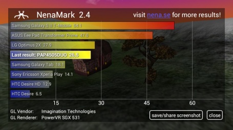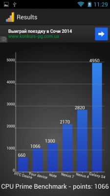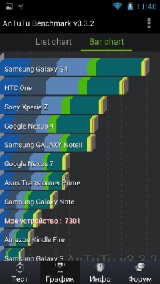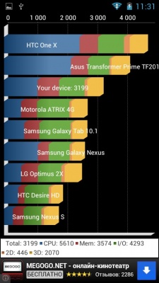 «Под капотом» рассматриваемого «автомобиля» 2-ядерный CPU MT6577 Cortex A9, тактовая частота которого 1,2 ГГц, 512 МБ оперативной памяти, а также неплохая графика PowerVR SGX 531.