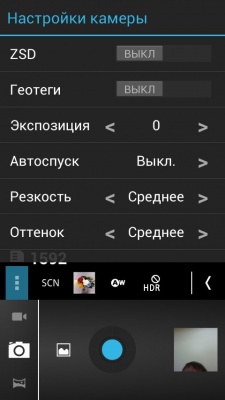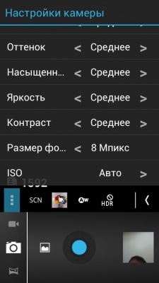 8 Мп камера с автофокусом, без вспышки и со стандартным количеством настроек/режимов съемки. Ниже настройки и тестовый контент.