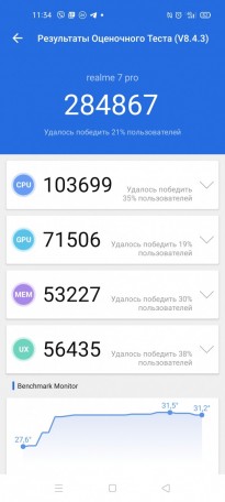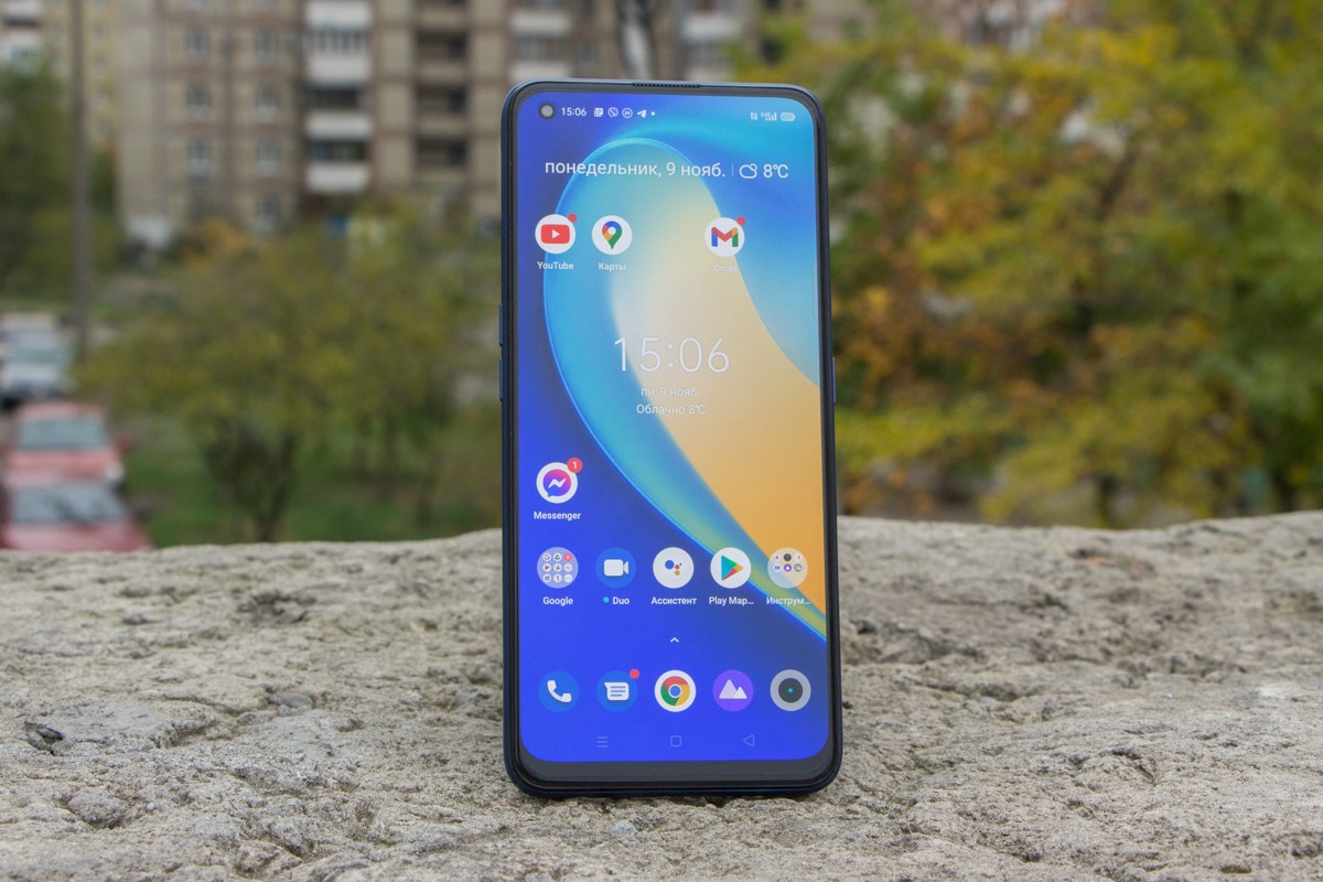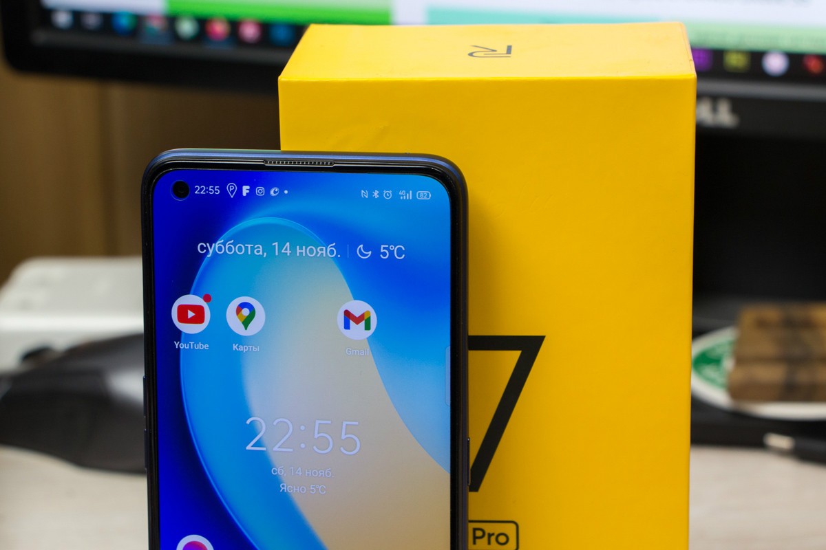Обзор смартфона realme 7 Pro: снова успех, снова бестселлер?!Прошло только полгода с момента обзора realme 6, а производитель уже предлагает к покупке модель 7 Pro. Это один из самых доступных смартфонов с дисплеем Super AMOLED, у него очень быстрая зарядка и по производительности он не в конце списка среднебюджетников. Какие цифры в Antutu, как снимают камеры и личные впечатления от realme 7 Pro далее в обзоре. Дизайн и корпус Realme смело использует в материалах корпуса новые форматы, новые подходы к их оформлению и расцветке. У 7 Pro корпус получился удачным и красивым. Уверен, что светлый голубой вариант корпуса более яркий и интересный, а тот что на обзоре – просто сдержанный, но не менее симпатичный. Может показаться, что смартфон двухцветный, но это небольшой обман зрения. Расцветка просто ассиметрично зеркальная. Оригинально! Пластик тыльной крышки матовый, практичный, но от чехла из комплекта поставки отказываться не советую. Уверен, стекло смотрелось бы дороже, но и ценник при этом повысили. Сборка хорошая, читая отзывы реальных покупателей понимаю, что это один из плюсов всех смартфонов realme. Вес 182 грамма, габариты 160.9 x 74.3 x 8.7 мм. Для управления одной рукой, если она мужская и хотя-бы средних размеров, подходит. Расположение кнопок удобное. Их разместили как раз под большой и указательный пальцы. Сразу скажу, что огромный плюс этой трубке ставлю за ее стереодинамик. Не часто я делал так с другими телефонами, но realme 7 Pro использовался мной вместо компактной беспроводной колонки. Даже на уровне громкости выше среднего динамики играют отлично. На верхнем торце только микрофон, а слева слот под 2 SIM карты и карту памяти. На тыльной стороне блок с камерами. На чехле предусмотрели небольшое возвышение для их защиты. По корпусу все, готов поставить ему оценку 4,5 из 5. Но только из-за пластика тыльной крышки, тактильно я «за» стекло. Дисплей Realme 7 Pro не получил дисплея с частотой 90 Гц или более, но от этого его экран не стал не интересным. Производитель выбрал 6,4-дюймовую Super AMOLED матрицу с разрешением 1080х2400. Экран без сомнения хорош по цветопередаче, яркость 600 нит, охват цветовой гаммы NTSC 98%. Тот, кто обращает на это внимание – оценит. Возможно, если скажу, что здесь идеальный черный цвет -вам станет понятнее, почему производитель обращает на экран этого телефона особое внимание. На улице под прямыми солнечными лучами и при переизбытке света картинка читалась легко даже не на максимальной яркости. Углы обзора отличные. Рамку под дисплеем не могу назвать идеально тонкой, зато по бокам они тоненькие и не мешают. Соотношение экрана к площади лицевой панели 90,8%. В дисплей очень аккуратно врезана фронтальная камера. Она не по центру. А ближе к левому краю. В экран встроен сканер отпечатка пальцев, работает он без замечаний. Аппаратная начинка Смартфон realme 7 Pro спроектировали на базе чипсета Snapdragon 720G. Что ж, хороший выбор, дополненный графикой Adreno 618 и 8 ГБ LPDDR4X оперативной памяти. Это далеко не бюджетный смартфон в плане производительности и 285 тыс. баллов в Antutu это подтверждают. Встроенный накопитель на 128 ГБ UFS 2.1, расширяется картами microSD. Интерфейсы и связь