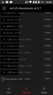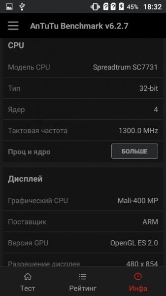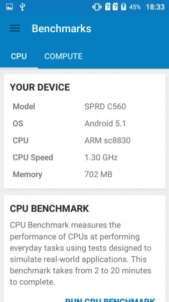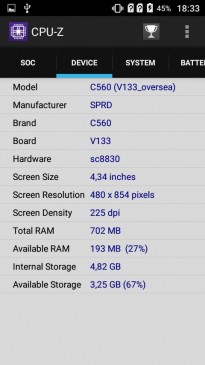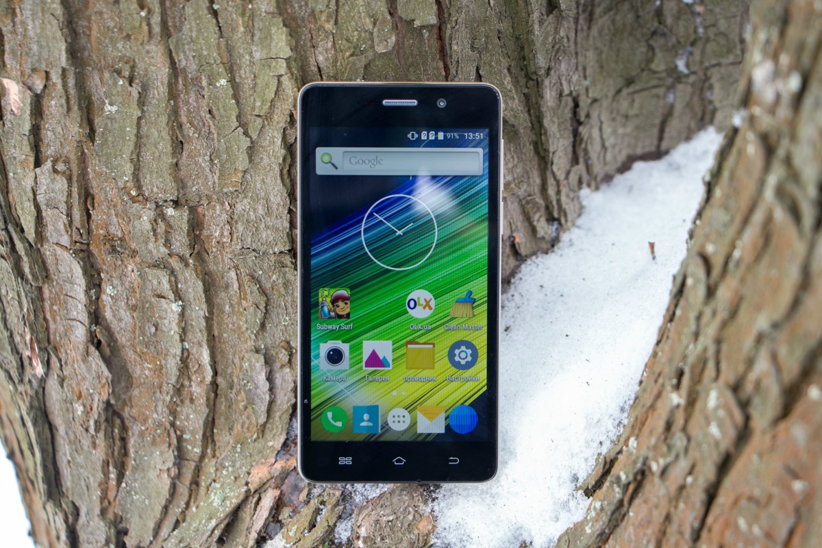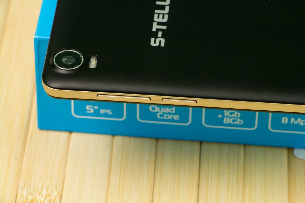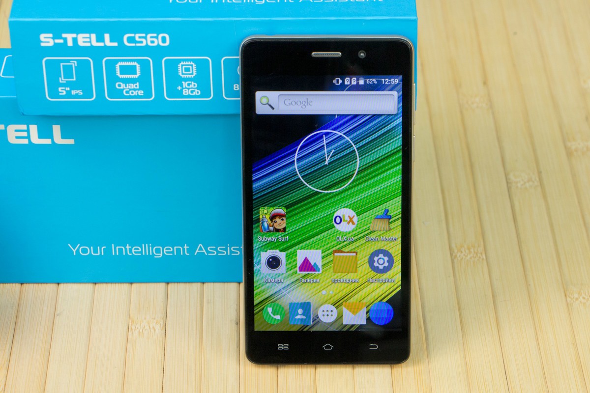 Обзор смартфона S-TELL C560Двухсимник S-TELL C560 имеет в своем распоряжении 4-ядерный процессор, 5-дюймовый IPS-экран и 8Мп камеру. Судя по заявленным спецификациям, группа покупателей 58-долларовой новинки кажется многочисленной, но так ли это, будем разбираться по ходу обзора. Комплект поставки Начнем с комплектации. В компактной коробке из плотного синего картона, со всех сторон «усеянной» спецификациями S-TELL C560, наряду со смартфоном нашлось место адаптеру питания, кабелю microUSB-USB, инструкции пользователя и даже защитной пленке на экран. Дизайн и функциональные элементы Что касается дизайна, то выглядит S-TELL C560 явно дороже своего ценника. Одним словом, если где-то есть рай для дизайнеров ультрабюджетных смартфонов, то создатель внешности тестируемой модели туда попадет. В облике трубки есть сразу несколько элементов, привлекающий взгляд. Во-первых, идеально замаскированная под металл золотистая рамка. Во-вторых, отлично гармонирующая с ней и плотно прилегающая к корпусу тыльная панель из матового пластика черного или белого цвета. Материал в темной версии трубки маркий, но очень приятный на ощупь и, что самое главное, не скользкий. А еще S-TELL C560 тонкий и очень легкий - 142x72x8 мм и 132 г. Он хорошо ложится в руку любого размера, пальцы легко дотягиваются до кнопки питания и клавиши регулировки громкости на правом торце. Последние, кстати, имеют тугой ход, так что случайных нажатий не будет. Принимая во внимание также отсутствие острых углов и ребер, за эргономику C560 я ставлю высший бал. Как, впрочем, и за качество сборки - ничего не скрипит и не люфтит. И это, несмотря на съемную заднюю крышку. Под ней у гаджета находится аккумулятор на 2100 мАч, и три отдельных слота - для двух SIM-карт и карты памяти. Разъем microUSB расположен на нижнем торце смартфона, а 3.5 мм аудиовыход на верхнем. В верхнем левом углу тыльной панели C560 обустроен объектив 8Мп камеры и двойная LED-вспышка, а в нижнем прорезь мультимедийного динамика. На передней панели сверху: датчики приближения и освещения, разговорный динамик и LED-индикатор. Снизу – сенсорные кнопки управления без подсветки. Дисплей 5-дюймовый дисплей смартфона получил разрешение 854x480 точек. Плотность пикселей на дюйм – 195. В основе экрана ISP-матрица, поэтому здесь довольно приличные углы обзора и насыщенность цветов. Подсветка регулируется как вручную, так и автоматически. Ее запас средний. Отсутствие защитного стекла и олеофобного покрытия в S-TELL C560 нивелирует защитная пленка из комплекта поставки. Кстати, на качество отклика сенсора она не влияет. Мультитач отзывчивый, распознается до 2 одновременных касаний. Аппаратная начинка и производительность «Железо» S-TELL C560 стандартное для такого класса устройств: 1 ГБ оперативной памяти и 4-ядерный процессор Spreadtrum SC7731 с тактовой частотой 1.3 ГГц и графикой Mali 400MP1. В повседневном использовании для комфортной работы нетребовательного пользователя возможностей аппаратной начинки трубки точно хватит. Память Объем встроенной памяти составляет 8 ГБ. Плюс предусмотрена возможность расширения Flash-накопителя microSD-картами. Коммуникационные возможности Для установки карты памяти, кстати, жертвовать второй SIM-картой не нужно - слоты раздельные. Симки работают в сетях GSM: 850/ 900/1800/1900 МГц и HSPA/WCDMA: 900/2100 МГц, но одновременно только в режиме ожидания. Из модулей беспроводной связи в наличии Wi-Fi 