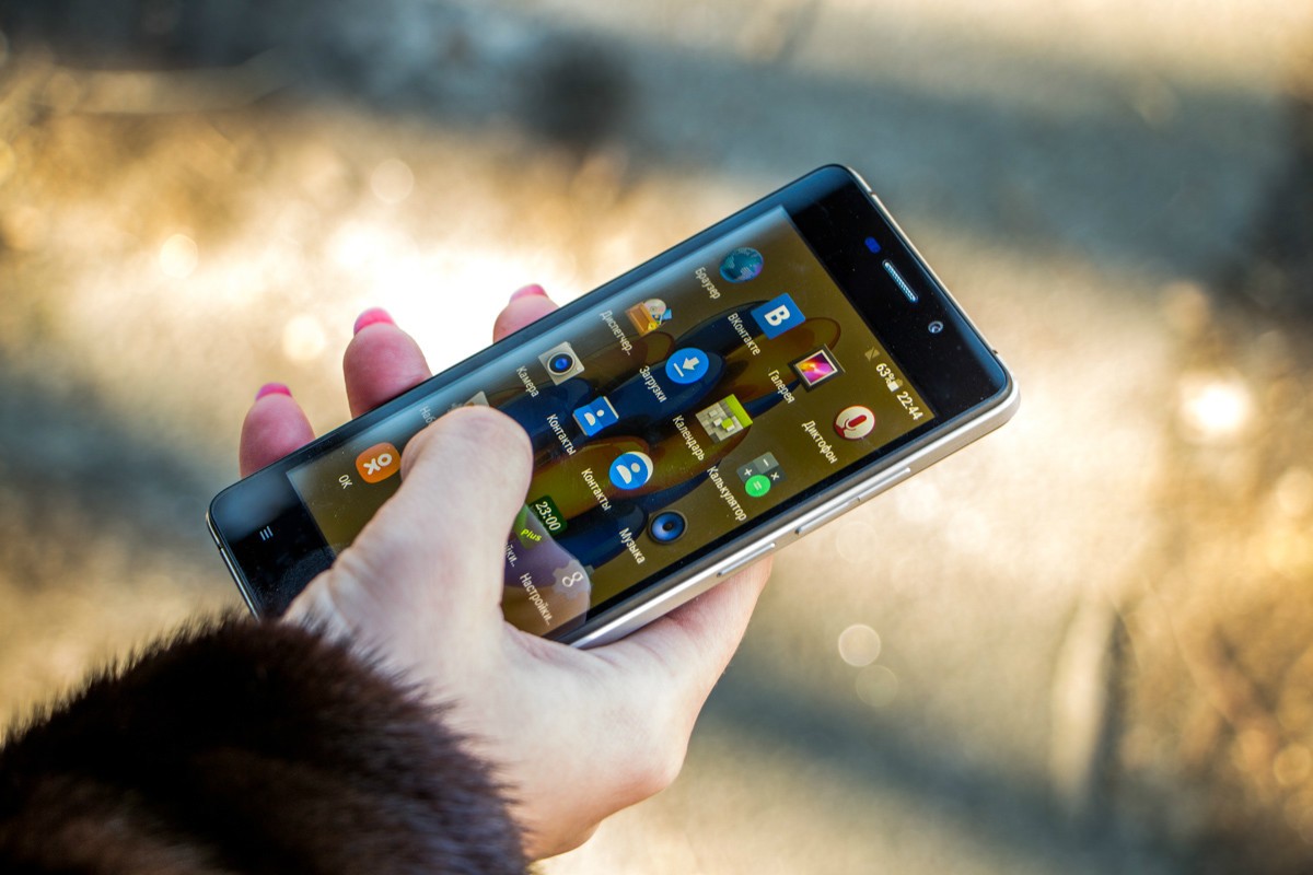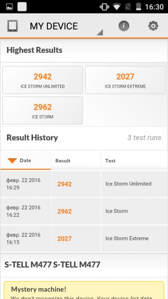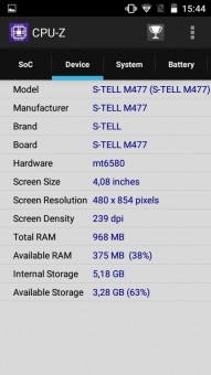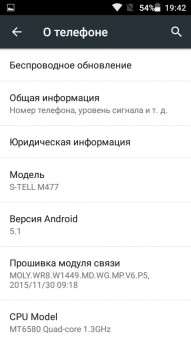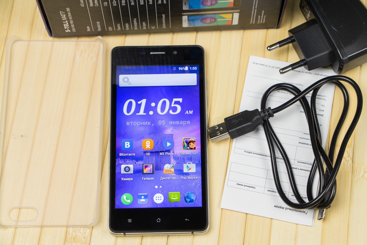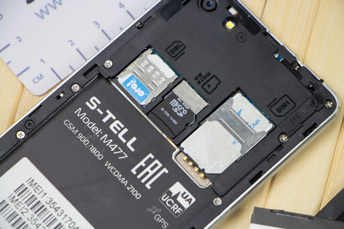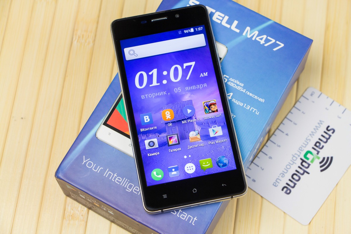 Обзор смартфона S-Tell M4774.5-дюймовый смартфон S-Tell M477 стоимостью всего 1777 грн обладает всем необходимым для повседневной деятельности минимумом возможностей, включая поддержку двух SIM-карт и карт памяти, и даже может похвастаться поддержкой функций управления жестами и «Умное пробуждение». Об этом и не только далее в нашем обзоре. Лень читать текстовый обзор? Смотрите видео-обзор...Комплектация и дизайнS-TELL M477 поставляется в компактной коробке вместе с адаптером питания, кабелем microUSB-USB, руководством пользователя, гарантийным талоном и пластиковым чехлом. Последний предусмотрен комплектом поставки, как показала практика, не на экстренный случай, а очень даже для ежедневного использования. Переднюю панель устройства он не защищает, да и не надо - здесь с этой целью уже изначально наклеена пленка, а вот торцы, а главное тыльная часть, которая изготовлена из пластика с красивым зеркальным эффектом, останутся в целостности и сохранности. Плюс ко всему S-TELL M477, одетый в такой чехол, не скользит в руке. Да и вообще благодаря небольшим габаритам - 131?65?9 мм при весе 135 грамм, он отлично лежит в ладони и удобен для управления пальцами одной руки. Нет претензий и к сборке – на сдавливание ни скрипом, ни треском гаджет не отвечает. И это, замечу, несмотря на съемную заднюю крышку, которая не только выглядит эффектно, но и прячет под собой ряд важных элементов: слот для карты памяти microSD, два под симки формата mini и micro, плюс съемный аккумулятор. В верхней ее части выведен стилизованный объектив основной камеры со светодиодной вспышкой, а ниже нанесен логотип производителя. Для снятия предусмотрен специальный зазор в левом нижнем углу. Еще одна стильная особенность дизайна модели M477, на мой взгляд, - внушительная металлическая рамка, опоясывающая его корпус. Как и в iPhone 5S или прошлогодних гаджетах металлической A-серии от Samsung, она имеет аккуратные скошенные грани на торцах, за счет чего смартфон выглядит симпатично и солиднее большинства конкурентов в классе. Справа в нее врезана клавиша питания и кнопки регулировки звука, сверху 3.5мм аудиовыход и порт microUSB, а снизу вывод микрофона и решетка мультимедийного динамика. На передней панели смартфона над экраном по соседству с датчиками освещения/ приближения и решеткой разговорного динамика находится объектив фронтальной камеры. Снизу обустроены сенсорные кнопки управления без подсветки. ДисплейЦентральное место на передней панели S-TELL M477 отдано 4.5-дюймовому экрану с разрешением 854x480 точек. Матрица выполнена по технологии IPS, причем неплохого качества. Небольшая пикселизация есть, а вот углы обзора широкие и по вертикали, и по горизонтали. Яркость регулируется как вручную, так и автоматически. Понравилась также возможность настройки параметров изображения, в частности контраста, насыщенности, цветовой температуры, с помощью технологии MiraVision. Как упоминала ранее, на экран смартфона из коробки уже наклеена пленка. Без нее он не только не защищен от царапин и другого рода повреждений, но и мгновенно покрывается отпечатками пальцев. Еще один аргумент за то, чтобы ее оставить – по ней лучше скользит палец. При этом чувствительность остается на хорошем уровне. Сенсор на прикосновения реагирует быстро и безошибочно, распознавая до 2 одновременных касаний. ПамятьНа борту S-TELL M477 установлен Flash-накопитель е