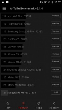 Она дополнена двойной вспышкой, автофокусом и, как и фронтальная, множеством режимов съемки: HDR, Панорама, Красивое лицо, Живое фото, обнаружение лиц и тд. При фото- и видеосъемке в помещении и при плохом освещении сильно страдает резкость. Днем на улице дела обстоят гораздо лучше. Убедитесь в этом сами, посмотрев примеры снимков. Тестовые фото ПОS-TELL M573 работает под управлением операционной системы Android 5.1 Lollipop с фирменной оболочкой, лишенной отдельного меню приложений, зато с опцией управления жестами. На скриншотах ниже можно увидеть перечень предустановленных программ, а также возможности для персонализации смартфона. ВыводыЧто ж, 75-долларовый S-TELL M573, возможно, и не силен по части «продвинутых» игр, но на другие нехитрые повседневные задачи производительности его аппаратной начинки хватает. Кроме того, в плюсы модели можно записать хороший IPS-экран, неплохой внешний динамик, две камеры со вспышками ну, и конечно же, привлекательный дизайн, сочетающий металлическую рамку со стеклянными панелями. Увы придется выбирать между двумя SIM-картами или картой памяти и в виду отсутствия подсветки кнопок управления учится определять их в темноте на ощупь, но для устройства за $75, на мой взгляд, это не критично.