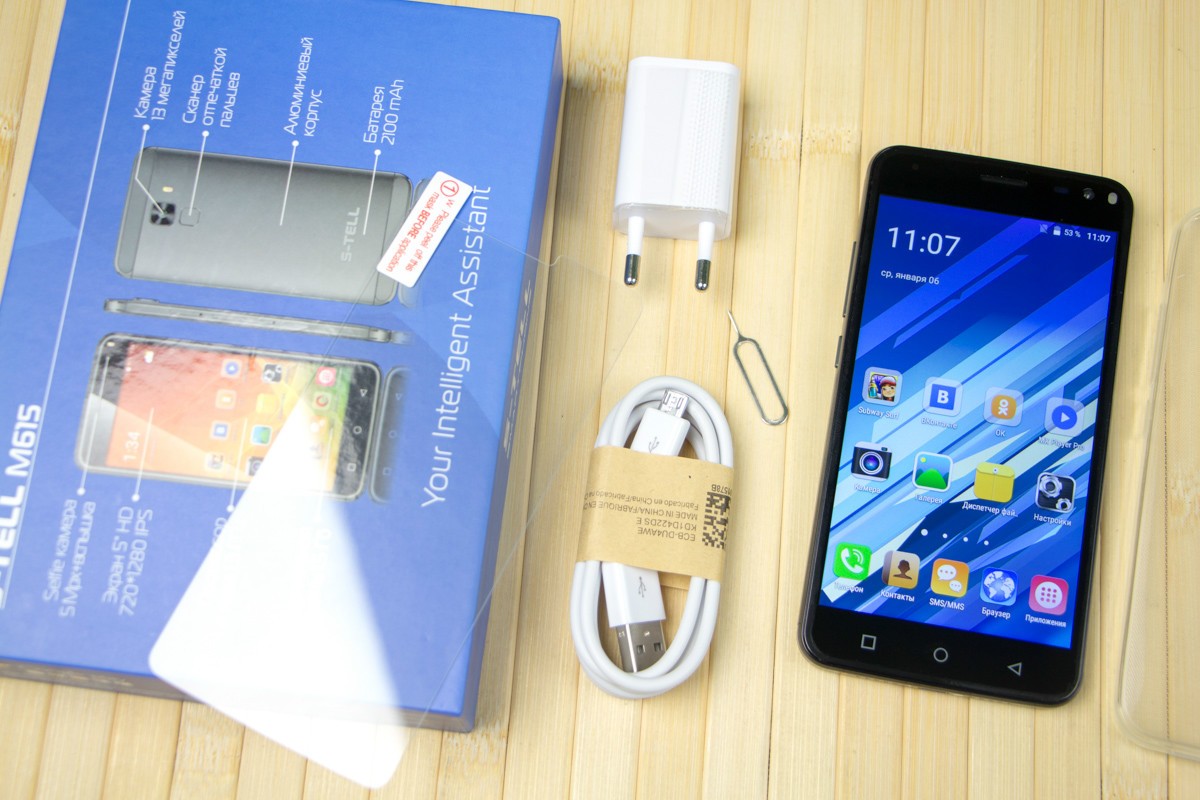 Обзор смартфона S-TELL M615 - максимум возможностей за $83Один из самых доступных смартфонов от украинского бренда с дизайном топового устройства именитого производителя, «железом», полностью соответствующим ценнику в $83, 13Мп камерой и даже сканером отпечатков пальцев. Достаточно ли этого S-TELL M615, чтобы заинтересовать покупателя, и чем еще любопытен аппарат!? Ответы далее. Комплект поставкиВ комплект поставки S-TELL M615 помимо него самого, адаптера питания, кабеля microUSB-USB, скрепки для открытия слотов и инструкции пользователя входит сразу два приятных бонуса – защитная пленка и прозрачный силиконовый чехол с узором в мелкую точку. Аксессуар эффективно защищает от повреждений тыльную панель и торцы смартфона, но вместе с тем, скрывает его стильный внешний вид. Дизайн и функциональные элементыВнешне S-TELL M615 примечателен цельнометаллическим корпусом со срезанными фасками на торцах и пластиковыми вставками в цвет металла с сетчатой текстурой вверху и внизу тыльной панели, из-за чего сзади его можно запросто перепутать с куда более дорогим Huawei G8. Мультимедийный динамик, объектив основной камеры и сканер отпечатков пальцев, к слову, у M615 также оформлены в стиле аппарата Huawei, так что, по сути, имеет на тесте смартфон с дизайном устройства A-бренда, но дешевле в разы. Кстати, кроме функции разблокировки, биометрический сенсор S-TELL M615 может использоваться для ответа на входящий звонок и в качестве кнопки спуска затвора камеры. Причем последние жесты выполняются с любого пальца и без аутентификации. Сам сканер поддерживает до 5 отпечатков, распознает их быстро и четко. Помимо него на тыльной панели смартфона обустроена светодиодная вспышка и выступающий над поверхностью объектив 13Мп камеры, защищенный металлическим ободком.
