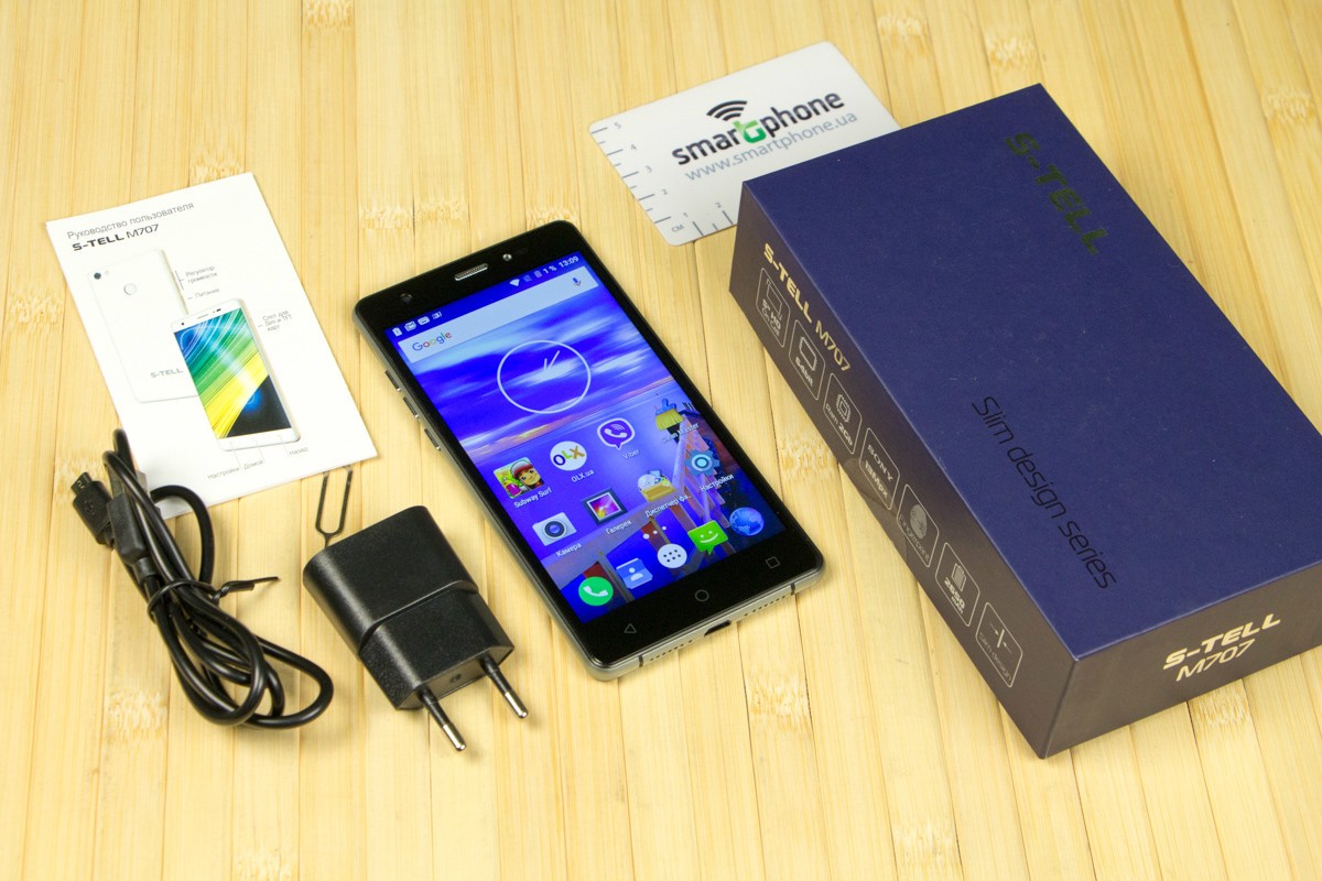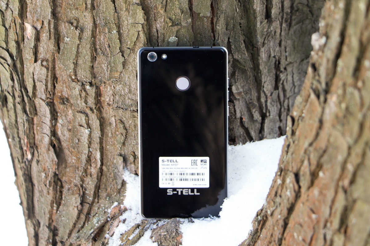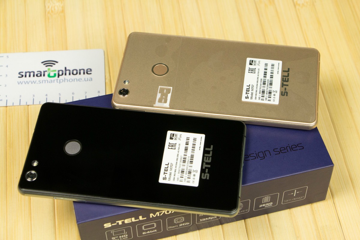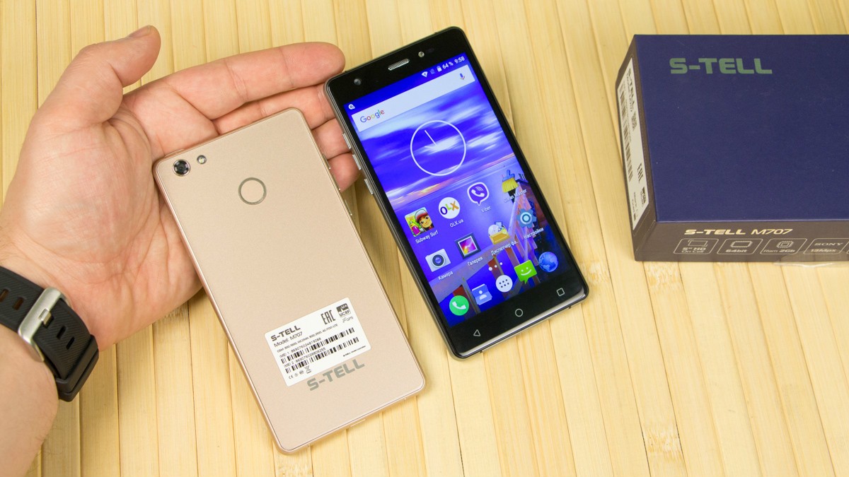 Обзор смартфона S-TELL M707 – утонченный бюджетник!S-TELL M707 оснащен сканером отпечатков пальцев, 5-дюймовым HD IPS-экраном без воздушной прослойки и 13Мп камерой Sony. В дополнение к этому, при ценнике всего в $95 упор сделан на яркий и запоминающийся дизайн. Чем именно модель привлекает внешне и какие ещё интересные особенности имеет? Обо всем этом расскажем далее в обзоре. КомплектацияS-TELL M707 поставляется в компактной коробке из темно-синего картона. Ее боковушки усеяны разнообразными пиктограммами с техническими характеристиками модели, а надпись на лицевой части «Slim design series» отчетливо гласит, что внутри нас ждет смартфон-«худышка». Кстати, помимо него, комплектацией предусмотрены также адаптер питания, кабель microUSB-USB, руководство пользователя и скрепка для открытия лотка сим-карт. Дизайн и функциональные элементыБлагодаря сочетанию стекла и холодящего руку металла внешне S-TELL M707 действительно выгодно отличается от большинства конкурентов. Да, такой «симбиоз» материалов не в новинку для рынка смартфонов, даже если брать во внимание бюджетный класс, тем не менее, выглядит всегда очень стильно. Главная дизайнерская «фишка» S-TELL M707 – это изящные полированные углубления на металлической рамке, которые визуально уменьшают и так довольно компактный корпус модели - 140.7х71.8х7.9 мм при весе 120 грамм. Сверху в такую «ложбинку» встроен 3.5 мм аудиовыход, а снизу порт microUSB, микрофон и мультимедийный динамик. Справа посажен гибридный слот для двух SIM-карт либо симки и карты памяти, а слева кнопки регулировки громкости и питания. Как и обод по периметру корпуса, они металлические. Клавиши крупные, хорошо разнесены, имеют отчетливый отклик и заметно выступают над корпусом, так что промахнутся мимо нужной сложно. Да и в целом к механическим элементам управления претензий нет. Благодаря компактным размерам и диагонали экрана в 5 дюймов палец без проблем дотягивается до нужной кнопки, даже если держать смартфон одной рукой. За счет все тех же относительно небольших габаритов гаджет и в ладони лежит надежно. И это, несмотря на скользкую стеклянную спинку. Упрекнуть последнюю можно лишь в маркости, но и то только в случае с черной расцветкой. На золотистой отпечатки менее заметны. Под 5-дюймовым дисплеем у S-TELL M707 находятся сенсорные кнопки управления без подсветки, что в принципе «норма» для такого класса устройств. В свою очередь LED-индикатор и вспышка, которые расположены вместе с прорезью разговорного динамика, объективом 5Мп камеры и датчиками освещения/приближения над экраном, редко можно встретить в трубках данного ценового диапазона. На зеркальной тыльной панели смартфона помимо камеры, вспышки и логотипа производителя обращает на себя внимание круглый сканер отпечатков пальцев. В первую очередь тем, что он отличается расцветкой. Используется серый металлический цвет. Биометрический сенсор утоплен в корпус, соответственно, легко находится на ощупь. Разблокировка смартфона осуществляется без предварительной активации экрана и довольно быстро. Ошибочный отказ в аутентификации случался лишь при неправильном размещении пальца. Максимальное количество зарегистрированных отпечатков - 5. Датчик мультифункциональный, так что помимо основной функции разблокировки устройства с его помощью можно сделать фото, принять звонок и открыть то или иное при