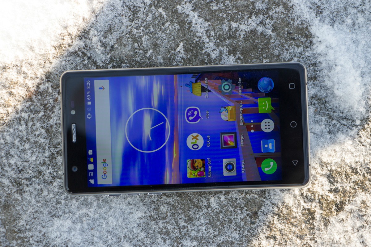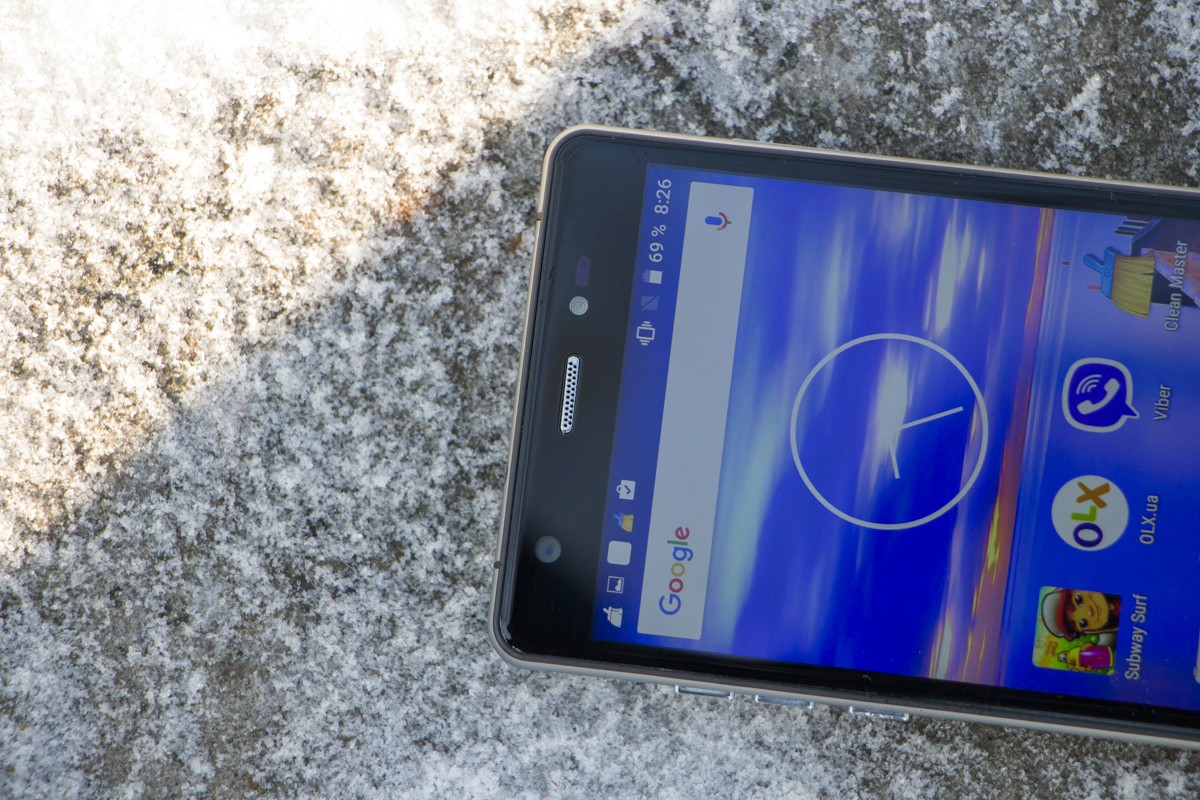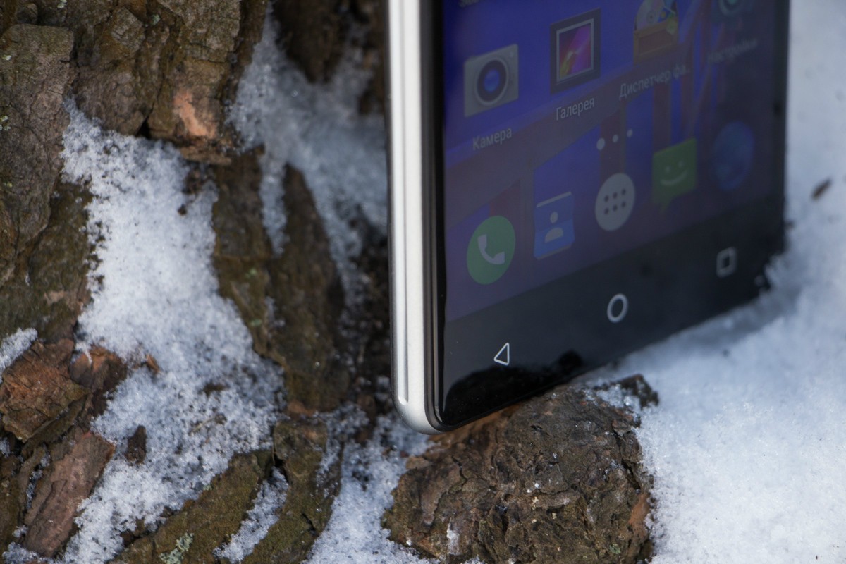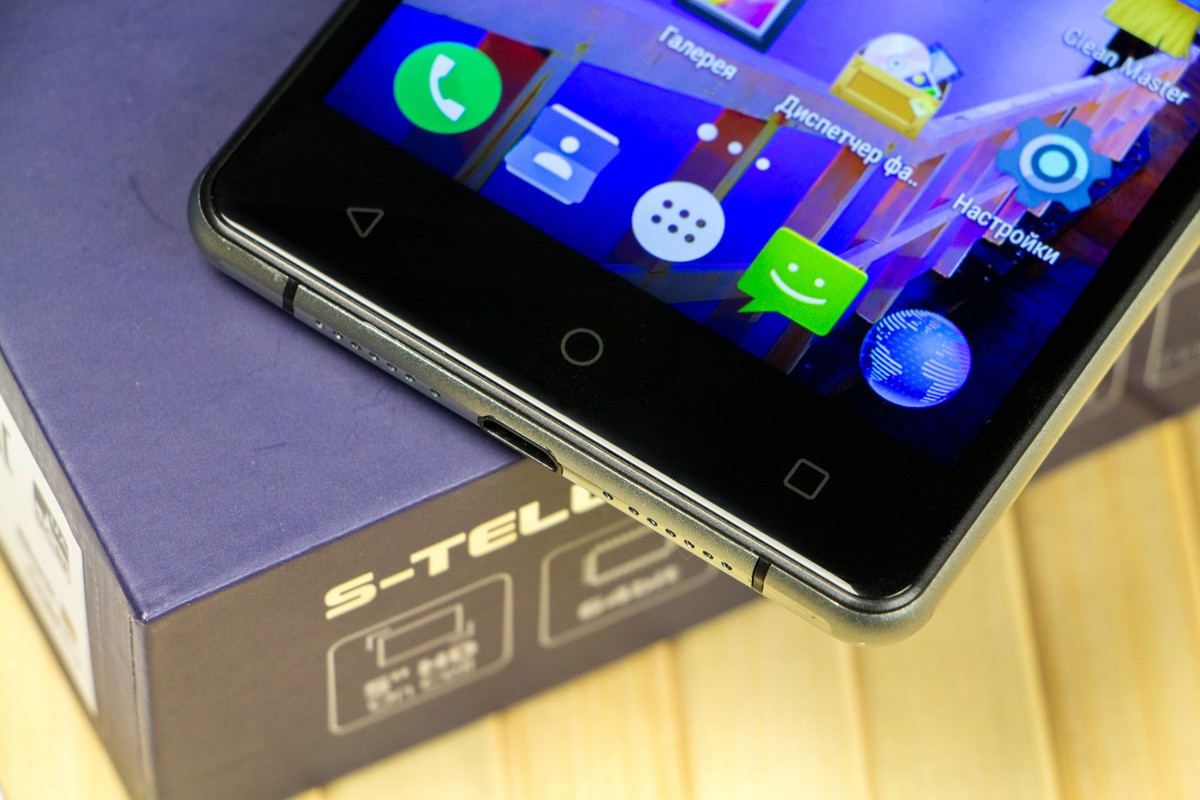 Обзор смартфона S-TELL M707 – утонченный бюджетник!S-TELL M707 оснащен сканером отпечатков пальцев, 5-дюймовым HD IPS-экраном без воздушной прослойки и 13Мп камерой Sony. В дополнение к этому, при ценнике всего в $95 упор сделан на яркий и запоминающийся дизайн. Чем именно модель привлекает внешне и какие ещё интересные особенности имеет? Обо всем этом расскажем далее в обзоре. КомплектацияS-TELL M707 поставляется в компактной коробке из темно-синего картона. Ее боковушки усеяны разнообразными пиктограммами с техническими характеристиками модели, а надпись на лицевой части «Slim design series» отчетливо гласит, что внутри нас ждет смартфон-«худышка». Кстати, помимо него, комплектацией предусмотрены также адаптер питания, кабель microUSB-USB, руководство пользователя и скрепка для открытия лотка сим-карт. Дизайн и функциональные элементыБлагодаря сочетанию стекла и холодящего руку металла внешне S-TELL M707 действительно выгодно отличается от большинства конкурентов. Да, такой «симбиоз» материалов не в новинку для рынка смартфонов, даже если брать во внимание бюджетный класс, тем не менее, выглядит всегда очень стильно. Главная дизайнерская «фишка» S-TELL M707 – это изящные полированные углубления на металлической рамке, которые визуально уменьшают и так довольно компактный корпус модели - 140.7х71.8х7.9 мм при весе 120 грамм. Сверху в такую «ложбинку» встроен 3.5 мм аудиовыход, а снизу порт microUSB, микрофон и мультимедийный динамик. Справа посажен гибридный слот для двух SIM-карт либо симки и карты памяти, а слева кнопки регулировки громкости и питания. Как и обод по периметру корпуса, они металлические. Клавиши крупные, хорошо разнесены, имеют отчетливый отклик и заметно выступают над корпусом, так что промахнутся мимо нужной сложно. Да и в целом к механическим элементам управления претензий нет. Благодаря компактным размерам и диагонали экрана в 5 дюймов палец без проблем дотягивается до нужной кнопки, даже если держать смартфон одной рукой. За счет все тех же относительно небольших габаритов гаджет и в ладони лежит надежно. И это, несмотря на скользкую стеклянную спинку. Упрекнуть последнюю можно лишь в маркости, но и то только в случае с черной расцветкой. На золотистой отпечатки менее заметны. Под 5-дюймовым дисплеем у S-TELL M707 находятся сенсорные кнопки управления без подсветки, что в принципе «норма» для такого класса устройств. В свою очередь LED-индикатор и вспышка, которые расположены вместе с прорезью разговорного динамика, объективом 5Мп камеры и датчиками освещения/приближения над экраном, редко можно встретить в трубках данного ценового диапазона. На зеркальной тыльной панели смартфона помимо камеры, вспышки и логотипа производителя обращает на себя внимание круглый сканер отпечатков пальцев. В первую очередь тем, что он отличается расцветкой. Используется серый металлический цвет. Биометрический сенсор утоплен в корпус, соответственно, легко находится на ощупь. Разблокировка смартфона осуществляется без предварительной активации экрана и довольно быстро. Ошибочный отказ в аутентификации случался лишь при неправильном размещении пальца. Максимальное количество зарегистрированных отпечатков - 5. Датчик мультифункциональный, так что помимо основной функции разблокировки устройства с его помощью можно сделать фото, принять звонок и открыть то или иное при