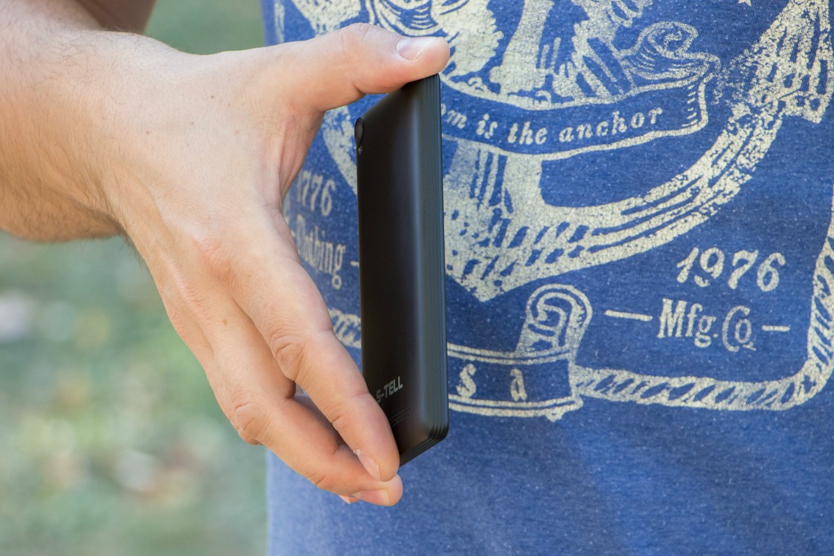 Дизайн и корпусЕсли P450 будет стоять на полке рядом с другими моделями от S-Tell, то есть вероятность, что покупатель и вовсе не обратит на него своего внимания. А все потому, что металла здесь нет ни на боках, ни на тыльной стороне, а он популярен сейчас как никогда в трубках всех ценовых категорий. Обозреваемый смартфон подкупает своим доступным ценником, именно поэтому корпус у P450 из матового пластика. И это уж точно нельзя отнести к его недостаткам. Софт-тач куда не посмотри: тыльная сторона, бока, кромка дисплея. Аналогично и для белого варианта. Оттенок у него очень красивый – холодный дневной свет. Материал не маркий, а светлый вообще делает невидимым отпечатки пальцев. Темному такое не под силу, но в глаза это не бросается, да и вытираются следы без особого усилия. Качество сборки трубки, несмотря на то, что речь идет о бюджетнике, на высоком уровне. Даже с учетом аккумулятора на 2800 мАч в руке аппарат не ощущается увесисто. Здесь 4,5-дюймовый дисплей, тем не менее, устройство компактное. Хорошая подгонка обусловлена тем, что съемная задняя крышка очень плотно держится за торцы гаджета и фактически является их неотъемлемой частью. Полоски по ободу улучшают тактильные ощущения и уберегают смартфон от выскальзывания из руки, – также конструкция тыльной панели. Расположение органов управления и разъемов удобное. Кнопки обустроены справа и выделяются не только цветом, но и комфортным выступом. Нажимаются они четко. MicroUSB порт и 3,5 мм выход находятся на верхнем торце. Микрофон один и он расположен в нижней части дисплея под сенсорными кнопками. Они не экранные, так что полезного пространства не занимают, однако реализованы без нанесения пиктограмм. Вместо последних – серебристые полоски, однако проблем с привыканием к ним нет. Над экраном расположен глазок фронтальной 2 Мпикс. камеры и датчики освещенности и приближения. ЗвукУ S-Tell P450 довольно большой мультимедийный динамик и это видно по корпусу. Он не способен на объем и особую детализацию, но вместе с тем хорошо «кричит» - не услышать мелодию входящего звонка у пользователя не получится уж точно. Хрипов даже на максимуме звучания нет. Расположен он на тыльной стороне под логотипом бренда. К разговорному динамику также без замечаний. Звук чистый без искажений. В настройках предусмотрено 4 системы улучшения звучания для динамиков и наушников. Последние комплектацией не предусмотрены. В коробке со смартфонов есть только зарядное устройство с кабелем micro-USB и краткое руководство пользователя. ДисплейСмартфон получил 4,5-дюймовый дисплей, разрешение которого - 540х960 точек. При желании пикселизацию рассмотреть можно, но на расстоянии вытянутой руки она уже не заметна. Экран хорош и по качеству передаваемой картинки его IPS-матрицей, и по углам обзора. Под себя его настроить позволяет опция Miravision. Достаточно небольшой оказалась степень вымирания отображаемых данных во время работы с трубкой в условиях яркого солнечного света. Регулировка подсветки предусмотрена как ручная, так и автоматическая. Чувствительность претензий не вызывает - поддерживается сенсорное управление посредством двух пальцев одновременно. Отпечатки с экрана вытираются с небольшим усилием. Дисплей прикрывается материалом, тактильно напоминающим пластик. Производитель не сообщает о его защитных возможностях, но мо