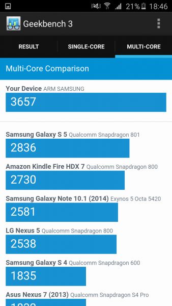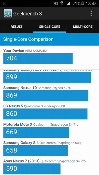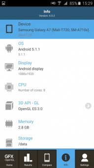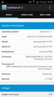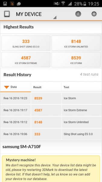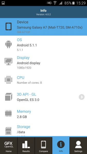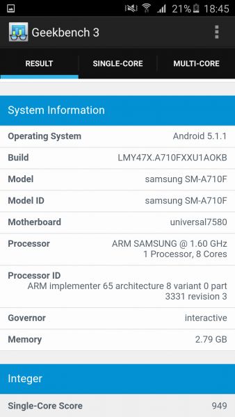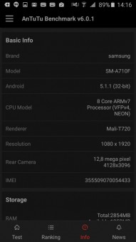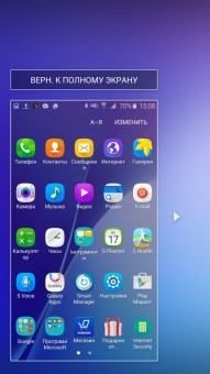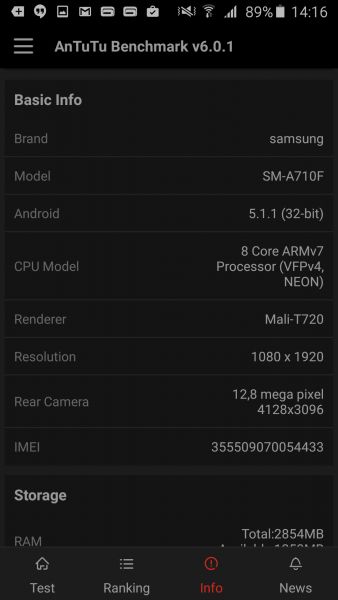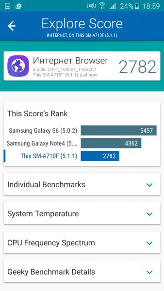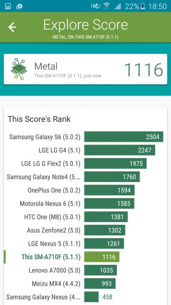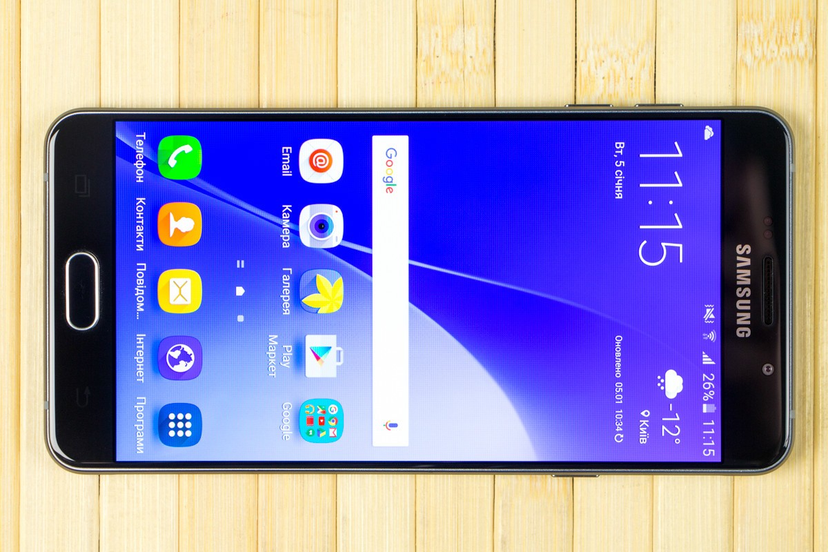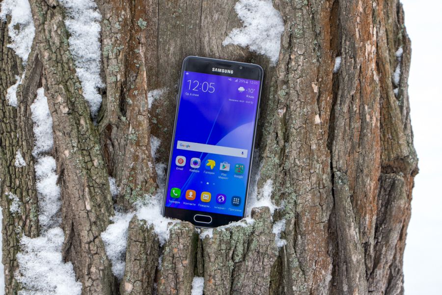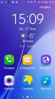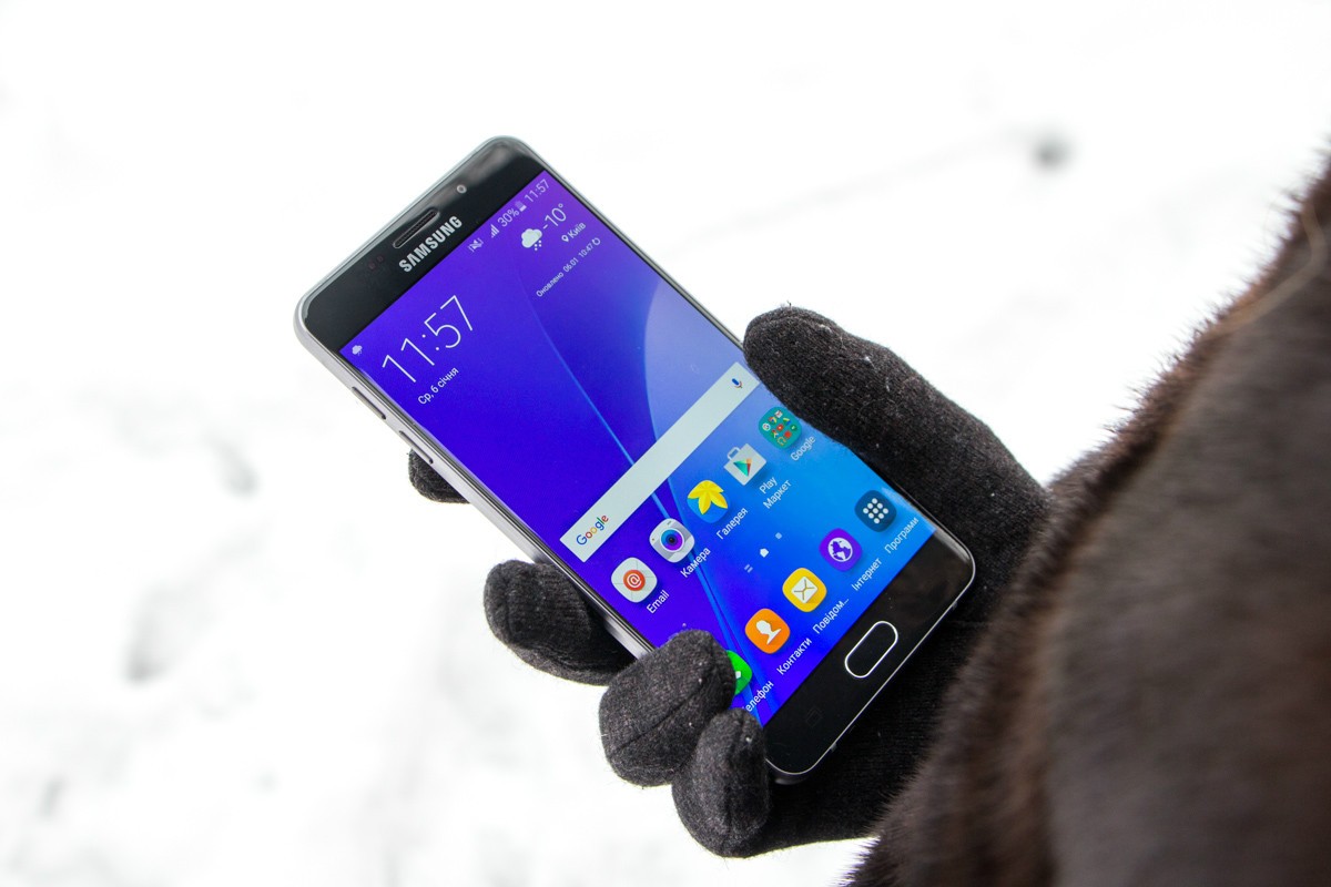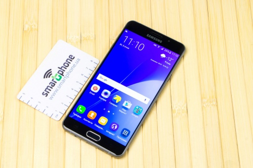 Дизайн и функциональны элементыДа, дизайн у Galaxy A7 (2016) неоригинальный, но «позаимствовали» его не у кого-нибудь, а у самого флагмана S6. Издалека перепутать смартфоны проще простого - внешне они практически идентичны. Корпус имеет в основе металлический каркас, а экран и задняя панель защищены слегка выпуклым 2.5D стеклом Gorilla Glass 4. Но, несмотря на качественные материалы и идеальную сборку, обеспечивающие тестируемой модели конструктивную надежность, ронять A7 я бы все же не советовала – стекло есть стекло. Выглядит, конечно, красиво и дорого, но при неаккуратном обращении ему свойственно и биться, и царапаться. Еще один минус такой поверхности – маркость. Особенно хорошо материал для дактилоскопии собирает тыльная панель устройства в черном окрасе, подобном тому, что достался мне на тест. Белая и золотистая версии смартфона, думаю, менее восприимчивы к отпечаткам пальцев. Что касается расположения кнопок управления и прочих функциональных элементов на корпусе нового A7, то оно также отчасти схоже с таковым у флагмана S6: слева, например, находятся кнопки регулировки звука, а справа клавиша питания и гибридный слот. Верхний торец гаджета отдан под микрофон шумоподавления, а нижний под 3.5 мм аудиовыход, порт microUSB, второй микрофон и решетку мультимедийного динамика. Тыльная панель модели примечательна лишь несколько выступающим над поверхностью объективом камеры, обрамленным металлическим кольцом, LED-вспышкой и логотипом компании- производителя. Разговорный динамик наряду с фронтальной камерой, датчиками освещенности и приближения обустроен над экраном. В отличие от прошлогоднего A7 в модели 2016-го года появился дактилоскопический датчик, что опять-таки толкает новинку ближе к премиальному сегменту. Встроен он в механическую кнопку «Home» и хранит до 5 отпечатков. Работает сенсор быстро и четко, так что по несколько раз прикладывать палец не приходится. Традиционные сенсорные кнопки по бокам от аппаратной оснащены яркой подсветкой для удобной работы в темное время суток. Казалось бы, при большой диагонали экрана и довольно крупных габаритах - 151.5x74.1x7.3 мм при весе 172 г, управлять смартфоном одной рукой крайне неудобно. Однако в настройках смартфона специально для этой цели предусмотрен режим «Управление одной рукой». Кроме того, упростить навигацию по его меню можно и с помощью опции «Простой режим экрана». ДисплейКак и модель прошлого года, Galaxy A7 (2016) оснащен 5.5-дюймовым Super AMOLED экраном с разрешением 1920х1080 точек. Плотность пикселей на дюйм 401. Изображение на экране четкое и контрастное даже при ярком солнечном свете, а углы обзора широкие как по горизонтали, так и по вертикали. На мой субъективный взгляд, дисплей тестируемой модели один из лучших в своем сегменте. В его настройках можно выбрать один из четырех режимов отображения, вручную отрегулировать уровень подсветки или же включить автоматическую. Отмечу также очень чувствительный сенсор, поддерживающий до 10 одновременных касаний, и отличное олеофобное покрытие, благодаря которому палец скользит по панели легко, а отпечатки пальцев малозаметны и быстро устраняются. Аппаратная начинка и производительностьЕсли по части дизайна у Galaxy A7 все как у флагмана S6, то на «железе» в угоду куда более доступному ценнику инженерам компании все же пришлось сэкономить. Под капотом смартфон