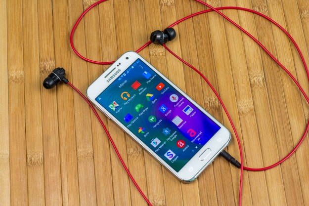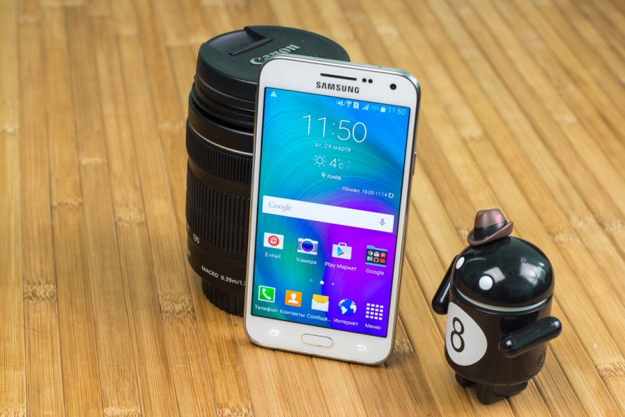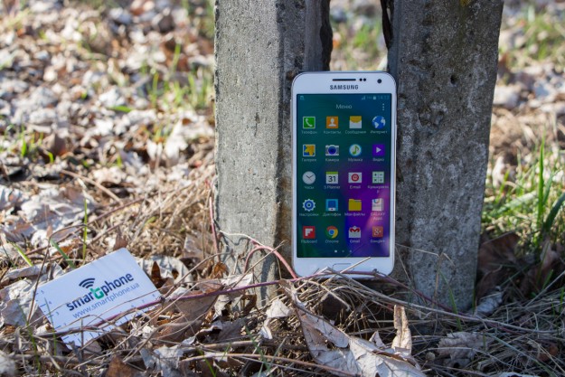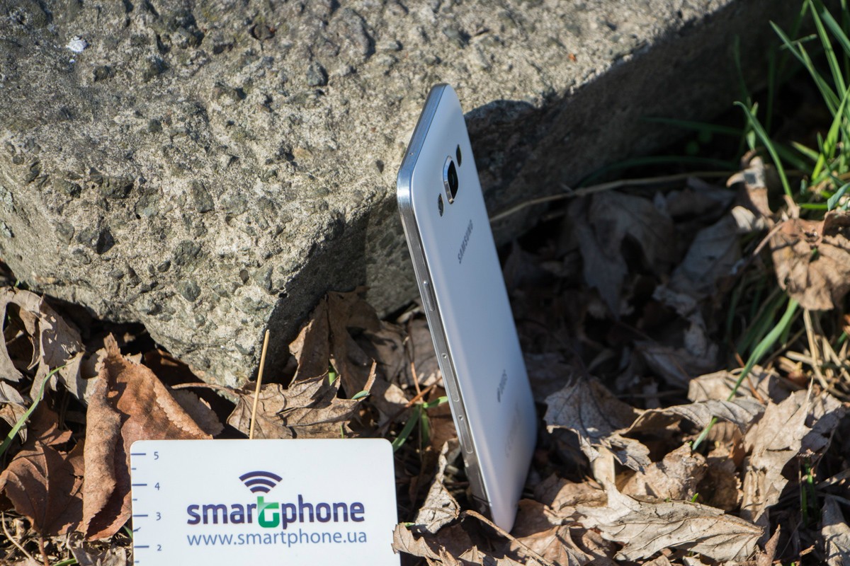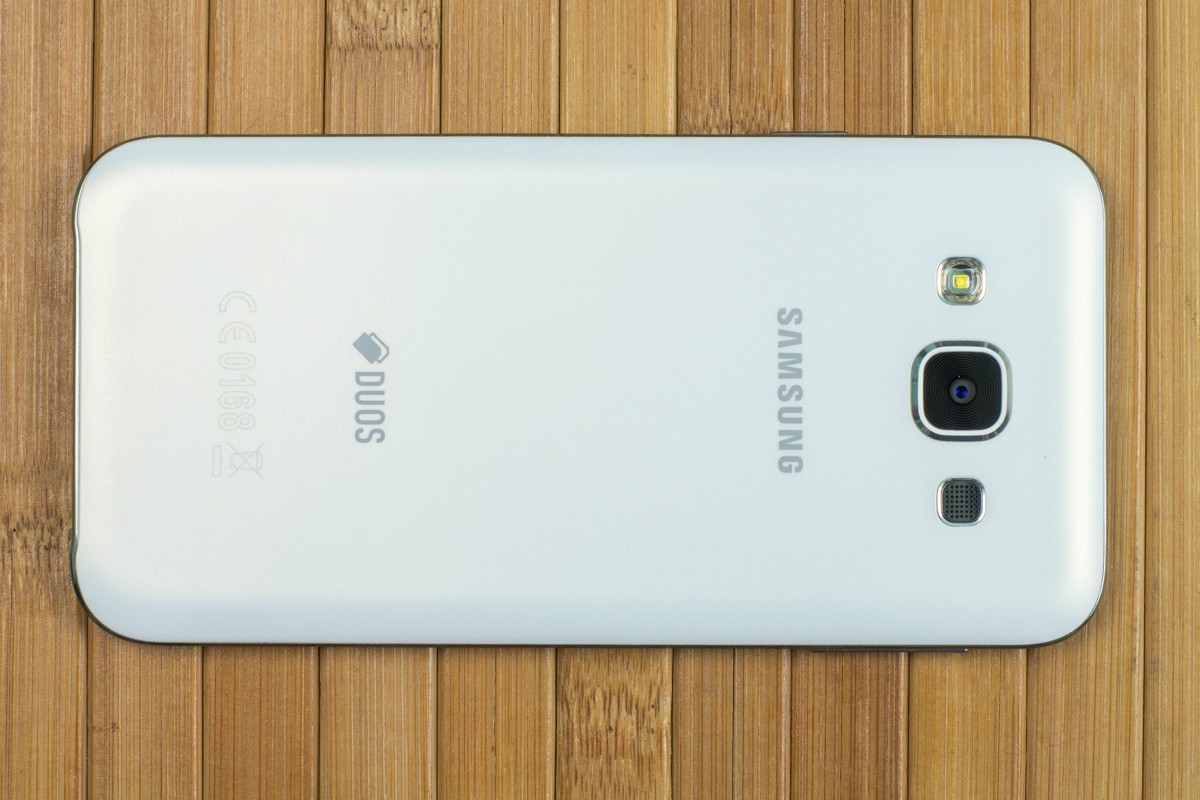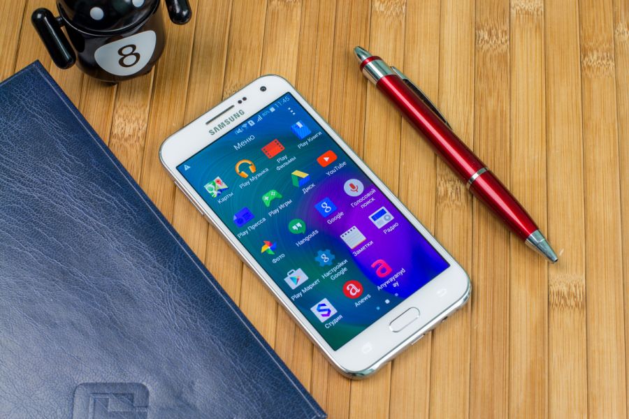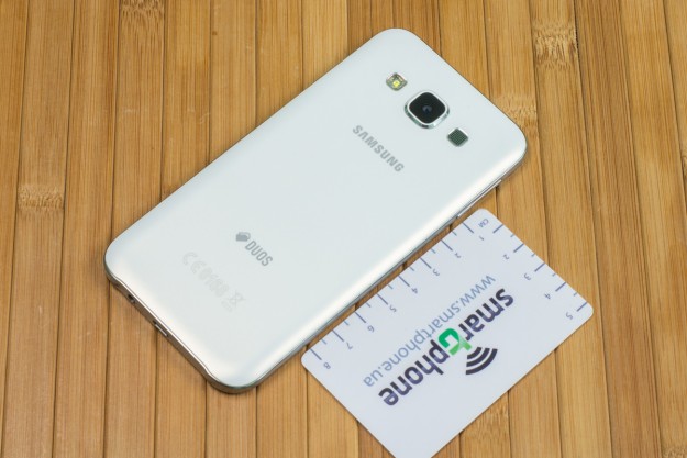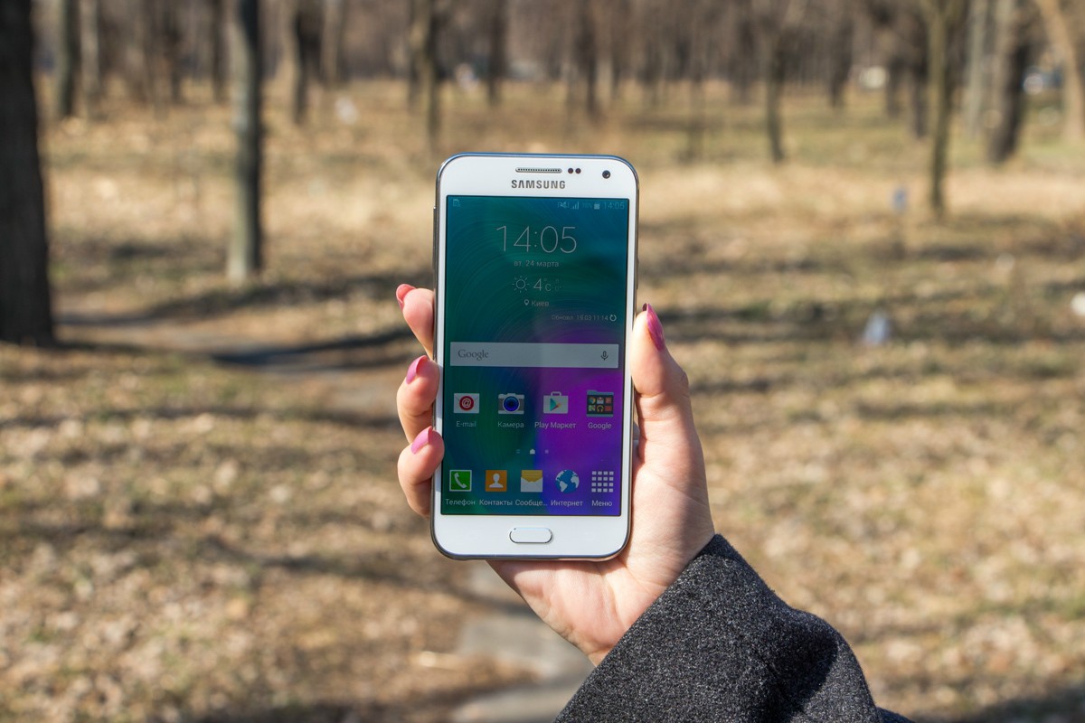 Обзор смартфона Samsung Galaxy E5 SM-E500H – «кореец» среднего дивизионаЗнакомимся с возможностями представителя новой линейки среднего ценового сегмента от Samsung. 4-ядерный процессор и 1.5 ГБ ОЗУ «под капотом», 5-дюймовым Super AMOLED HD-дисплей, далеко не самый слабый аккумулятор, плюс дизайн в стилистике аппаратов металлической A-серии и ценник в $270. Насколько хорош двухсимочный Samsung Galaxy E5 и что он может предложить пользователю, читайте ниже. Лень читать текстовый обзор? Смотрите видео-обзор...ДизайнНе стоит задерживать дыхание в предвкушении кардинально нового дизайна - Galaxy E5 во многом похож на гаджеты более премиальной металлической A-линейки, вот только на смену металлу здесь пришел пластик. Впрочем, эту «подмену» выдает здесь лишь рамка вокруг корпуса - явный пластик с фактурой «под металл». А вот тыльная панель E5, как и в гаджетах A-серии, получила специальное не скользящее и не собирающее отпечатки пальцев покрытие, которое может быть окрашено в черный, коричневый или, как в нашем случае, в белый цвет. В ее верхней части обустроен немного выступающий над поверхностью объектив 8Мп камеры, LED-вспышка и маленькая квадратная решетка мультимедийного динамика. Чуть ниже нанесен логотип компании-производителя. Передняя панель девайса в свою очередь примечательная металлической решеткой разговорного динамика, набором датчиков, глазком 5Мп камеры, механической кнопкой «Home» и двумя сенсорными – «Меню» и «Назад», загорающимися при включении телефона. Что касается разъемов и элементов управления на торцах – слева кнопка питания и два слота для SIM-карт, справа – качелька регулировки громкости, к которой приходится "тянуться", сверху – микрофон шумоподавления, а снизу порт microUSB, 3.5 мм аудиоразъем и второй микрофон. Сборка деталей – без нареканий, все элементы отлично подогнаны, ничего не скрипит и не болтается. Смартфон удобно и приятно держать в руках – он тонкий и легкий, ход кнопок короткий и четкий, а пластик изготовления корпуса высокого качества. Для удобного взаимодействия с гаджетом одной рукой на ходу здесь предусмотрены сразу два режима: «Управление одной рукой» и «Простой режим экрана». Дисплей5-дюймовый дисплей Galaxy E5 выполнен по технологии Super AMOLED. Он яркий и контрастный, имеет отличные углы обзора и тонкие боковые рамки - за счет чего визуально кажется еще большим. Его разрешение - 1280х720 точек, а плотность пикселей на дюйм - 294. Если не вглядываться, пикселизация не видна - картинка гладкая и крайне приятная глазу. Автоматическая регулировка подсветки здесь почему-то не предусмотрена, зато можно включить автонастройку яркости экрана в зависимости от режима отображения для сохранения батареи, выбрать один из четырех режимов работы дисплея, а также активировать функцию «На улице», после чего яркое солнце никоим образом не будет мешать комфортной работе с E5. Технология мультитач позволяет обрабатывать 10 одновременных прикосновений. Ну и еще одна приятная особенность - хорошее олеофобное покрытие – палец по экрану скользит легко, отпечатки пальцев малозаметны и устраняются быстро. А вот о защитном стекле в случае с E5 производитель не упоминает, но из двухнедельного опыта использования могу сказать, что оно прочное. ПамятьВ распоряжении пользователя Galaxy E5 16 ГБ встроенной памяти, а в дополнение к этому — возможность вставить microSD-карту объе
