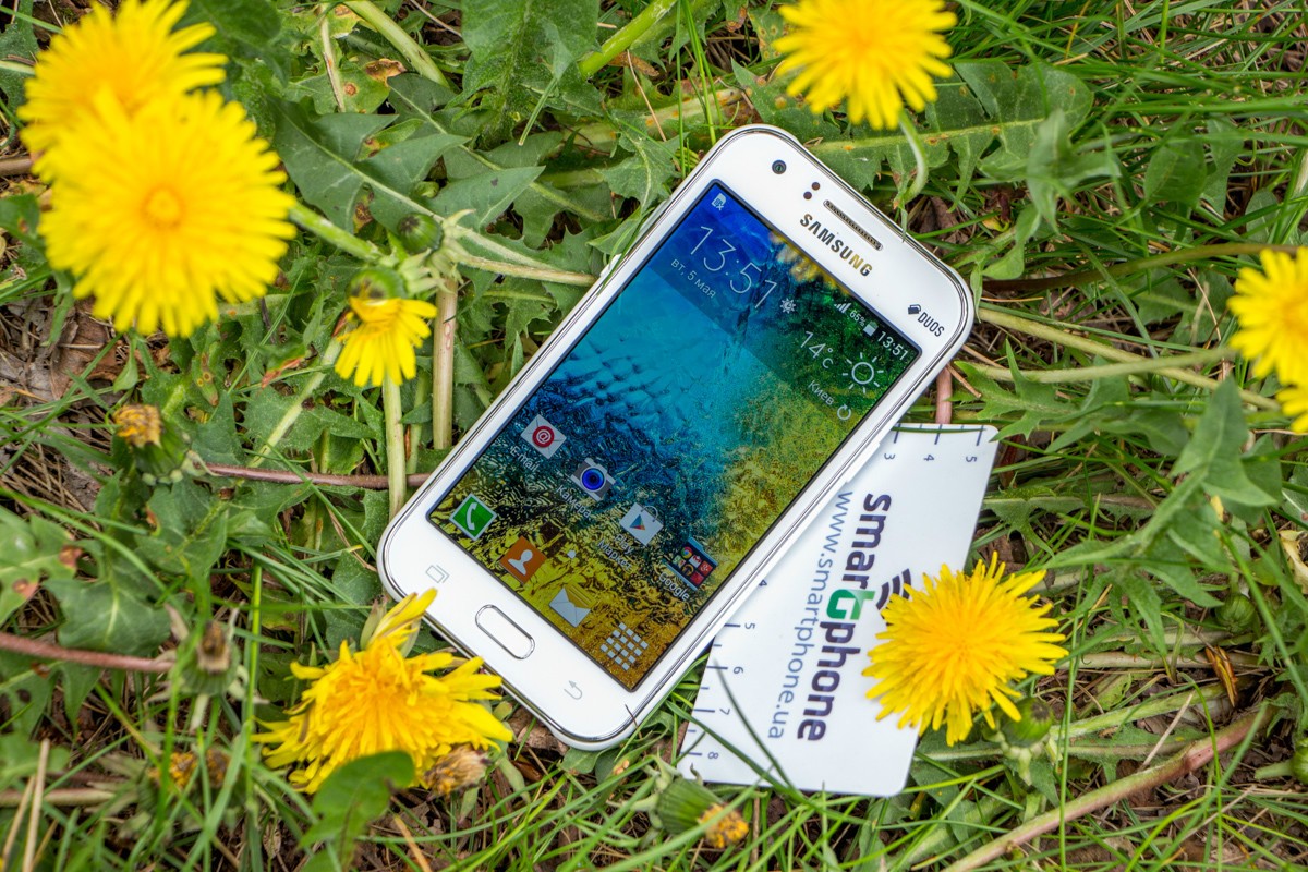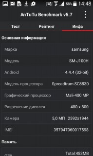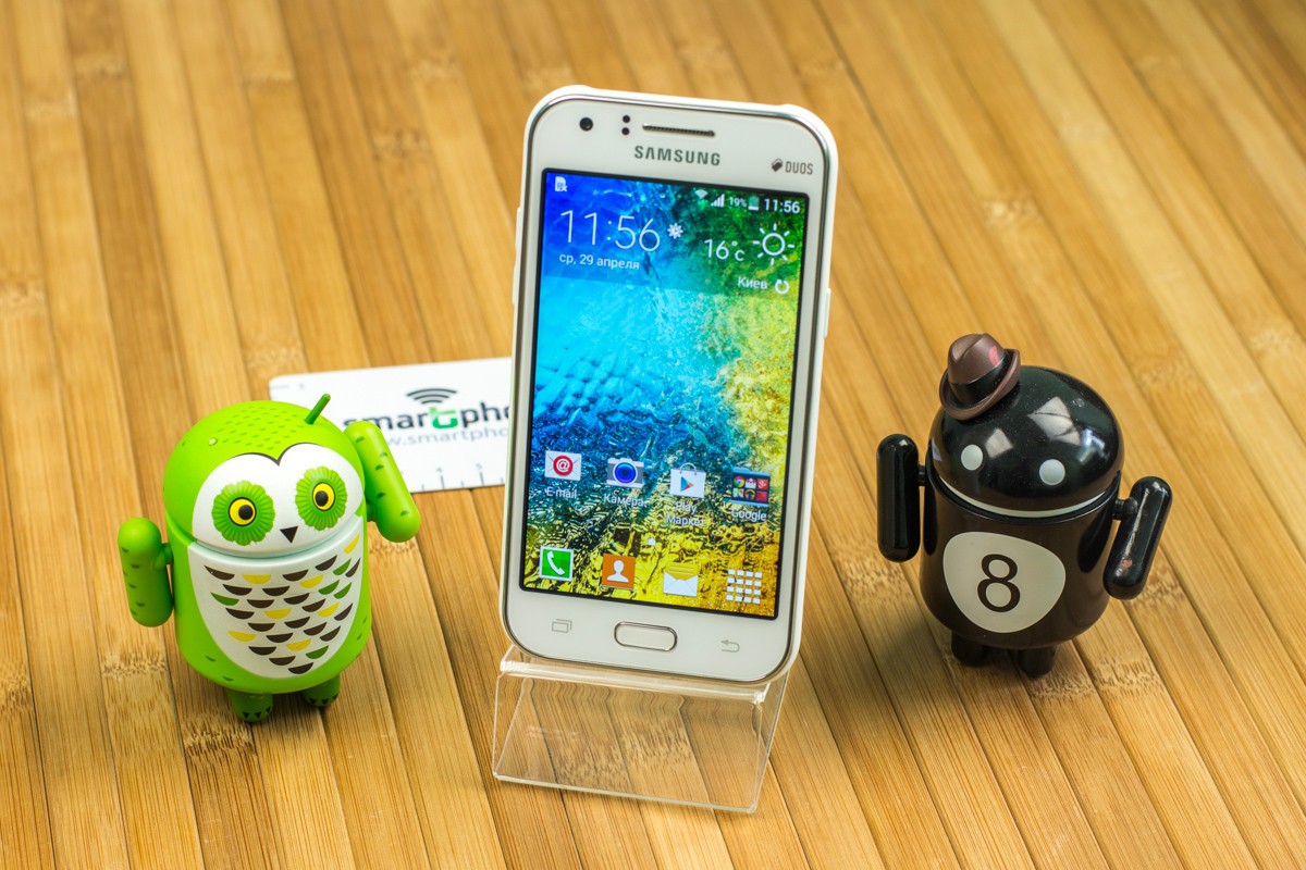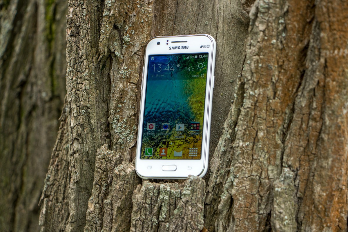 Обзор смартфона Samsung Galaxy J1(SM-J100H) – «кореец» на $110Первый и пока единственный представитель самой бюджетной в активе компании Samsung линейки устройств Galaxy J. Ему достался 4.3-дюймовый дисплей, 2-ядерный процессор, аккумулятор на 1850 мАч, 5Мп камера, поддержка двух SIM-карт и ценник всего в $110. Мало это или много? Вот с этим и разберемся далее в обзоре. Лень читать текстовый обзор? Смотрите видео-обзор...ДизайнGalaxy J1 — типичный представитель бюджетного класса, в том числе по части дизайна. Последний особо ничем не примечателен и во многом «одолжен» у других аппаратов южнокорейского производителя, а потому по праву может называться фирменным. Вместе с тем, одной «изюминке» здесь место все же нашлось. Я имею в виду экран J1, который как будто уложен отдельным слоем на корпусе, в то время как в предыдущих своих моделях «корейцы» наоборот старались объединить все вровень. Вряд ли кого-то удивлю, сказав, что в основе корпуса этой модели пластик. Он полностью матовый, белого с перламутровым отливом цвета. Тонкая слегка выступающая окантовка экрана также пластиковая, хотя при беглом осмотре кажется, что это металл. Стоит отдать должное Samsung за подборку материалов и их подгонке между собой – у меня никаких претензий - минимальные зазоры, никакого люфта и скрипа. И это несмотря на съемную заднюю крышку, прячущую под собой аккумулятор, два слота для microSIM-карт и один для microSD. В руке трубка за счет скругленных углов и торцов, небольшой диагонали экрана и компактных габаритов —129 x 68.2 x 8.9 мм, лежит просто отлично — до всего можно достать пальцами одной руки. В частности, до элементов управления: кнопки питания на правой «боковушке», качельки регулировки громкости на левой, порта microUSB и вывода микрофона снизу, аудиоразъема сверху. Ход клавиш мягкий с приятным кликом. На задней панели J1 все элементы сконцентрированы в верхней части: решетка мультимедийного динамика, слегка выступающий над поверхностью корпуса объектив 5Мп и LED-вспышка. На передней над дисплеем расположена решетка разговорного динамика, под ней логотип производителя, а немного левее от него датчики и объектив 2Мп камеры. Под экраном находятся две сенсорные кнопки: «Меню» и «Назад» без подсветки, и механическая «Домой» с ободком «под металл». Что касается цветового разнообразия выпускаемых в продажу J1, то доступны три варианта: белый с перламутровым отливом, черный или синий. ДисплейGalaxy J1 оснащен 4.3-дюймовым TFT-дисплеем с разрешением 480х800 точек. Плотность пикселей на дюйм – 217. Пикселизация видна невооруженным глазом, но в целом не мешает нормальной работе с гаджетом. Цветопередача и контрастность экрана средние, неплохие и углы обзора – лишь при сильном наклоне смартфона изображение немного темнеет. В отличие от тех же ранее тестируемых Galaxy E5 (SM-E500H) и Galaxy A3 (A300H) в J1 не предусмотрена возможность выбора режима работы дисплея, а яркость подсветки регулируется исключительно вручную. Кстати, в условиях яркого солнца даже на максимальном ее уровне экран заметно «слепнет», что объясняется наличием небольшой воздушной прослойки между стеклом и матрицей. Дисплей J1, учитывая бюджетный статус аппарата, не получил олеофобное покрытие. Впрочем, и без него палец по стеклу скользит хорошо, а отпечатки пальцев, которыми при активном использовании экран быстро покрывается, легко устраняются. Мультитач подд