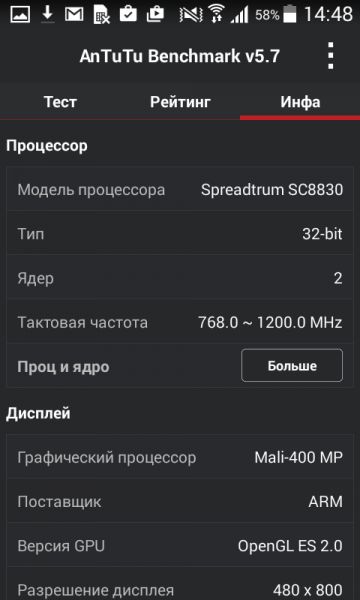 2 ядра, Spreadtrum SC8830, 1,2 ГГц |