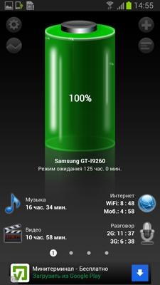 Возможности по части автономности были проверены при помощи простого тестера «Батарея ver 1.25». Этот тестер измеряет возможности при различных нагрузках.